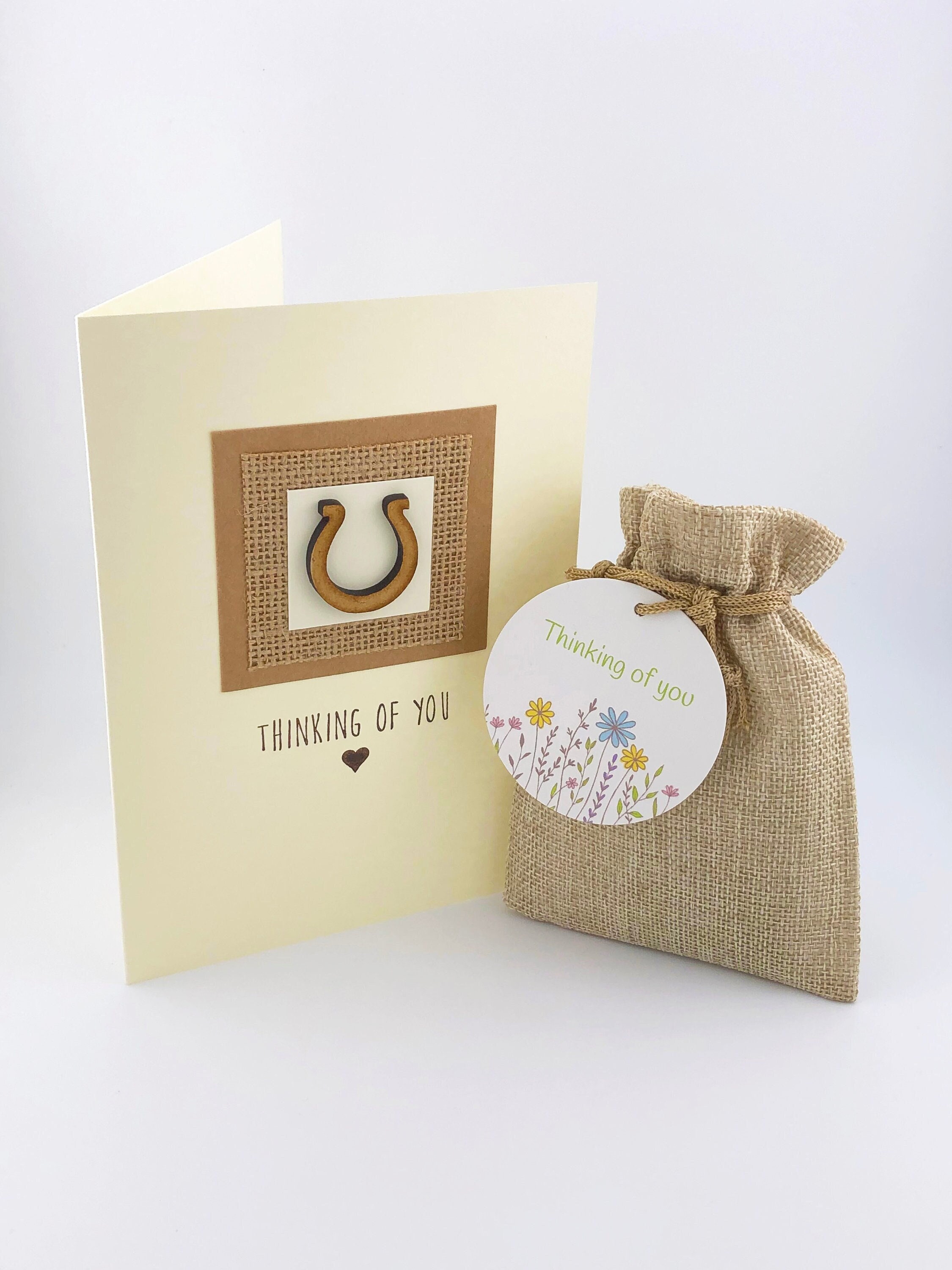 Handmade Horse Sympathy Card With Horseshoe Design & Native Wildflower Seedball Gift Bag. Pet Sy...