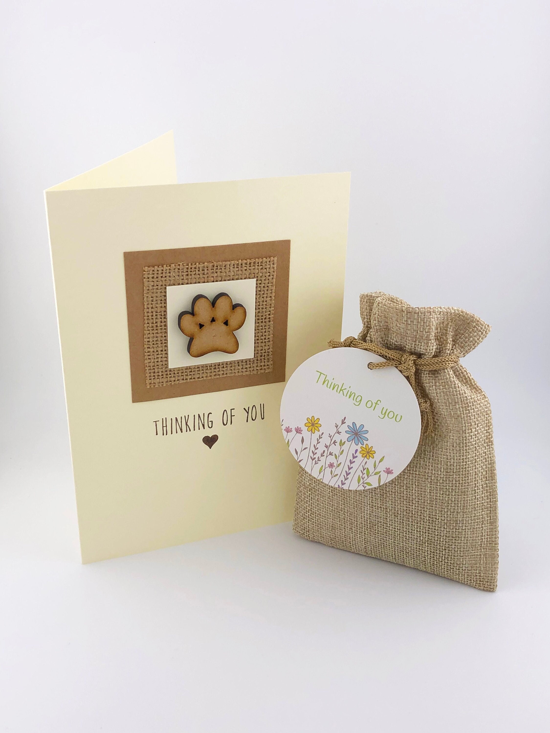 Handmade Pet Bereavement Card With Paw Print Design & Native Wildflower Seedball Gift Bag. Pet S...