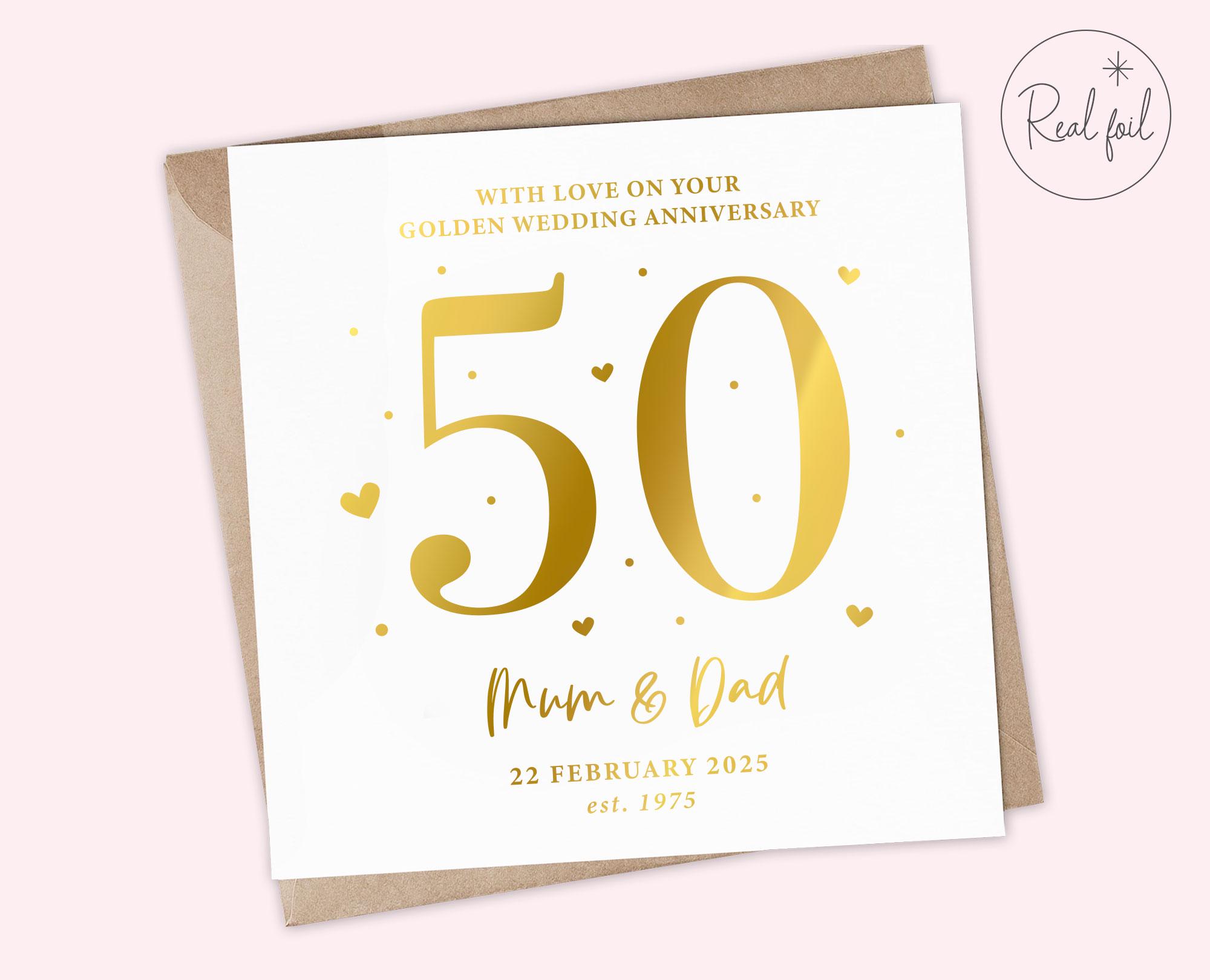 Personalised Golden Wedding Anniversary Card, 50th Wedding Annivers...