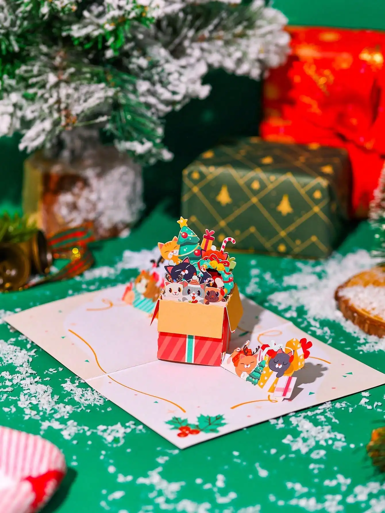 Christmas Kitty Pop-Up Card - 3D Greeting for Her, Merry Christmas ...