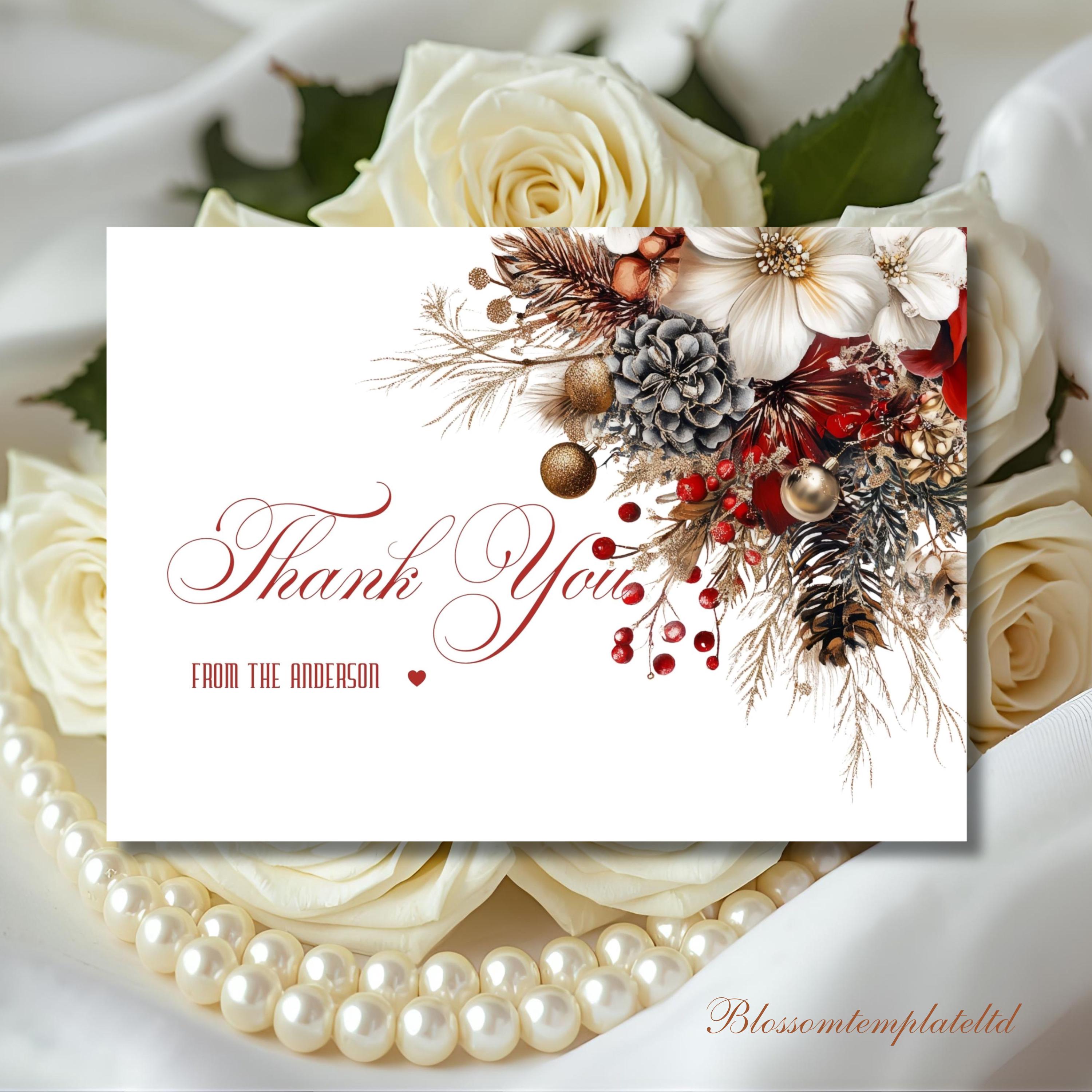 Editable Christmas Thank You Template with Festive Flower / PRINTABLE Christmas Floral Thank You Car...