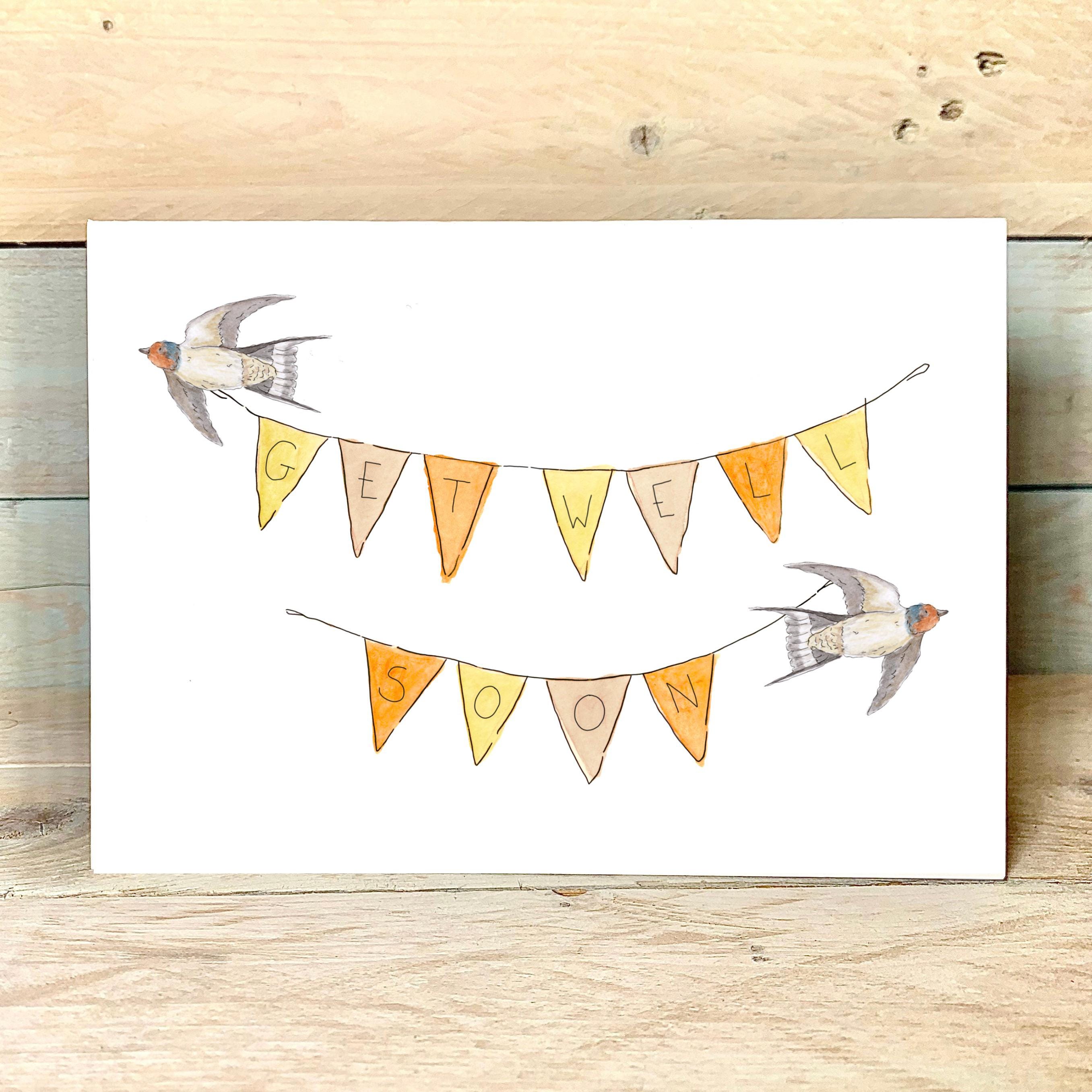 "Let this adorable \"Get Well Soon\" swallow holding up bunting card do the talking -...