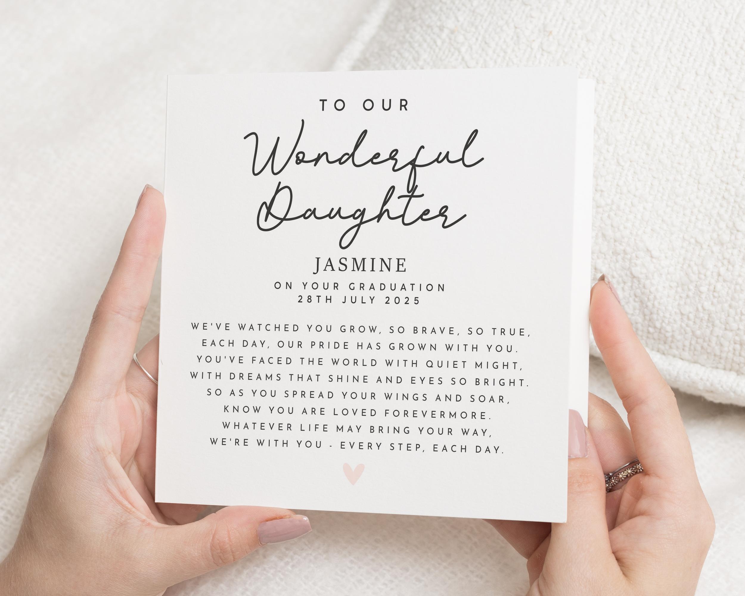 Celebrate your daughter's graduation with this elegant, personalised poem card. A thoughtful keepsak...