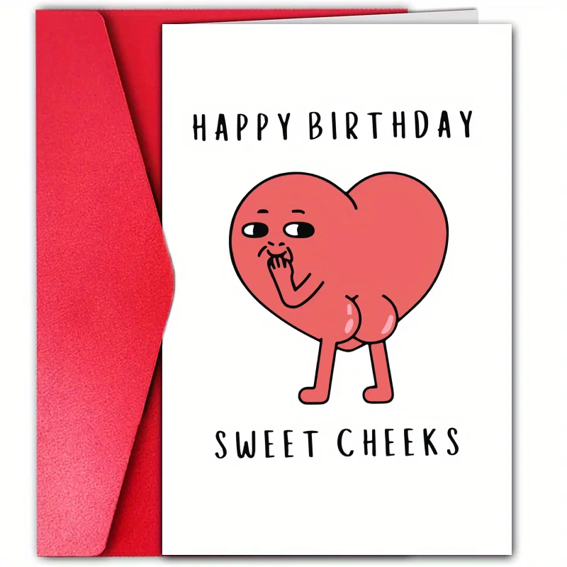 1pc, Birthday card, happy birthday, sweet cheeks, heart-shaped, ass, humorous birthday card