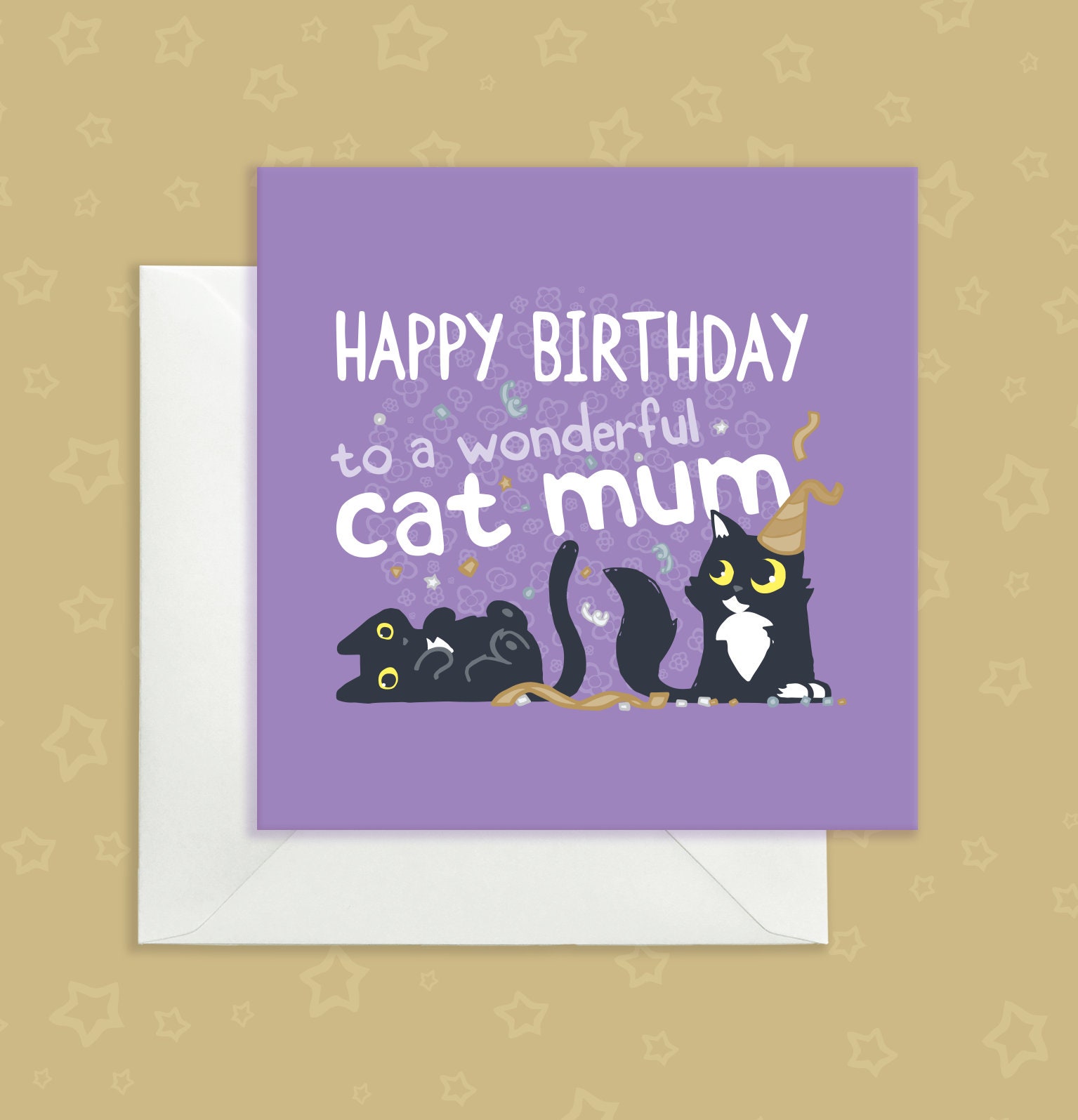 Cute cat mum birthday card, Happy Birthday cat card, Purple birthda...