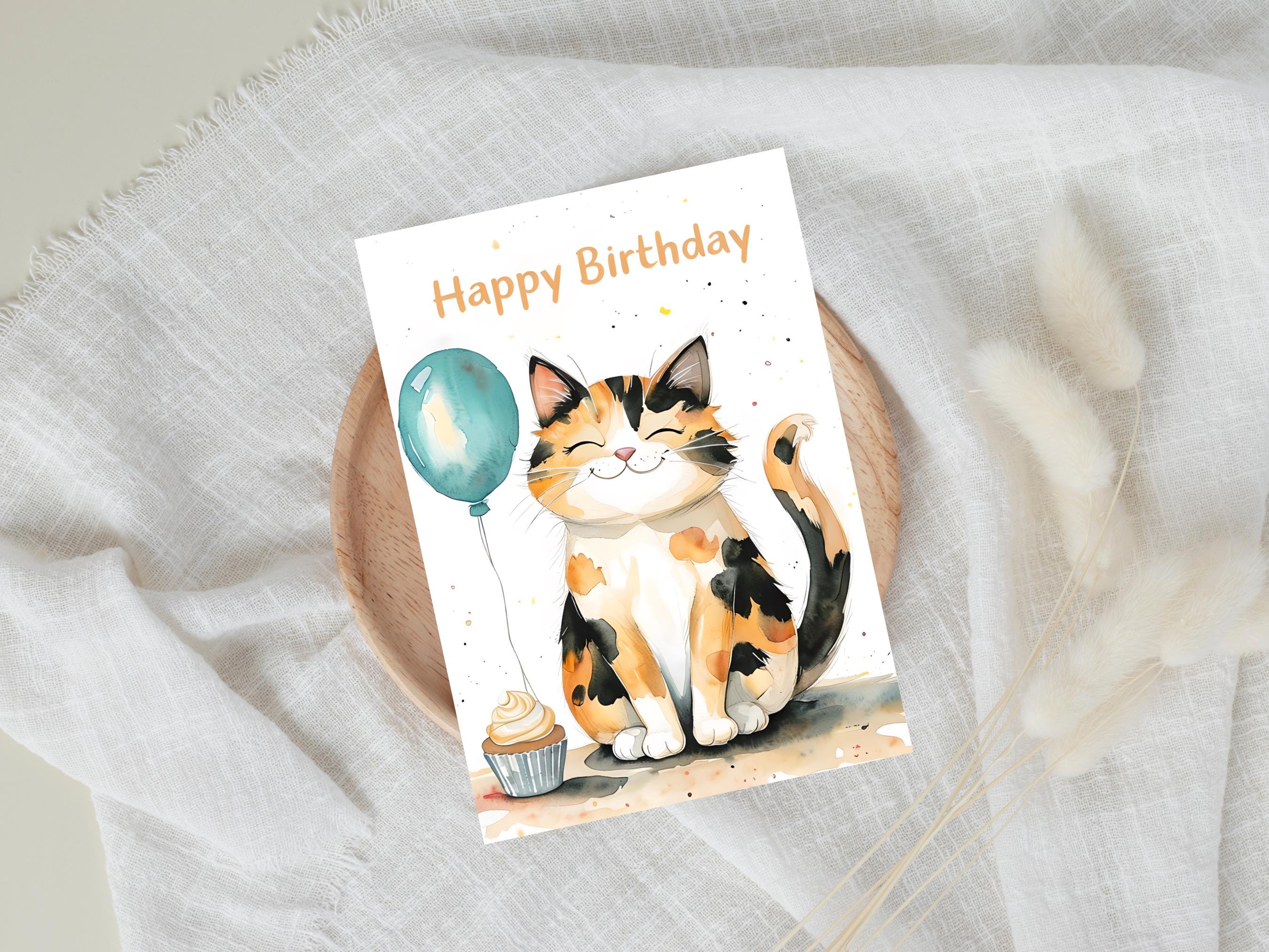 Tabby Cat Birthday Card Cat Kitten Happy Birthday Cat Card for Cat ...
