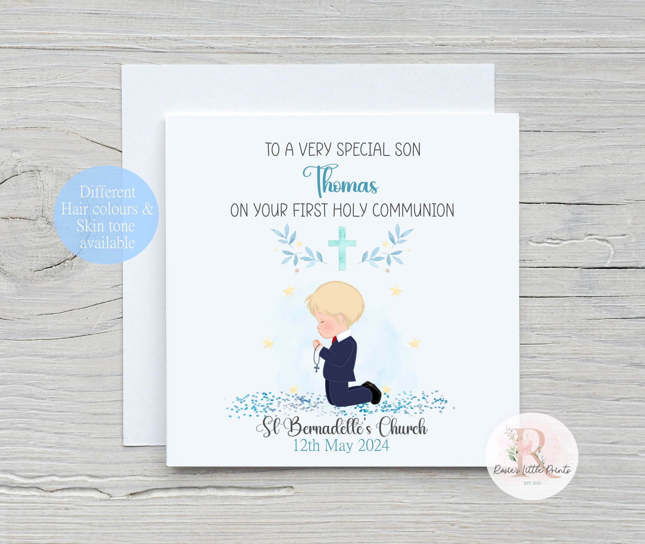 Personalised Boys First Holy Communion Card, Handmade Communion Day...