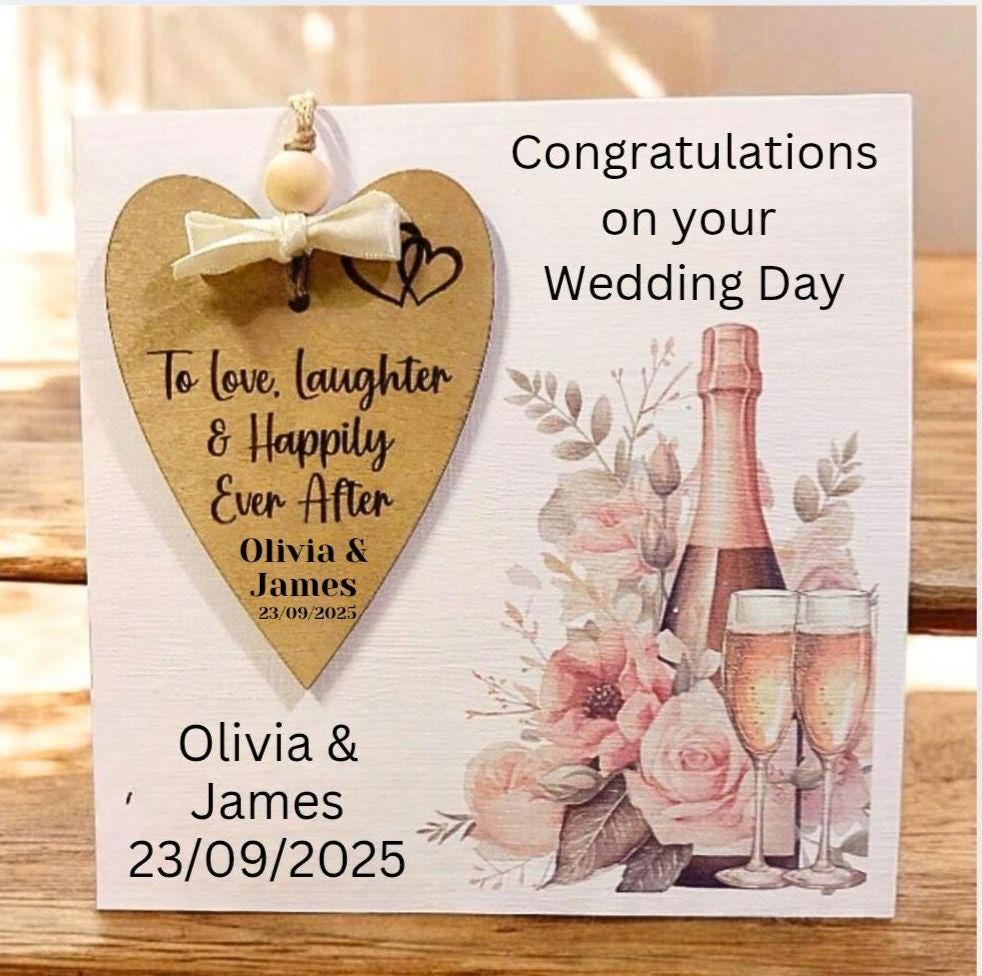 Our personalised Wedding Day Card with Hanging Heart Engraved Keepsake is the perfect personal touch...