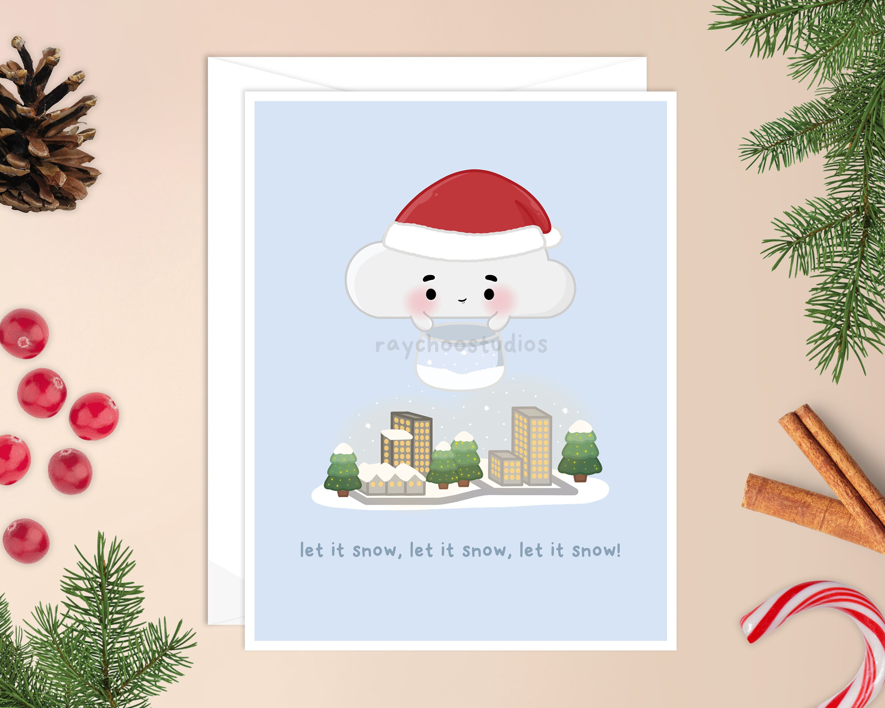 Let it Snow Christmas Card | nature Christmas card, kawaii snow clo...