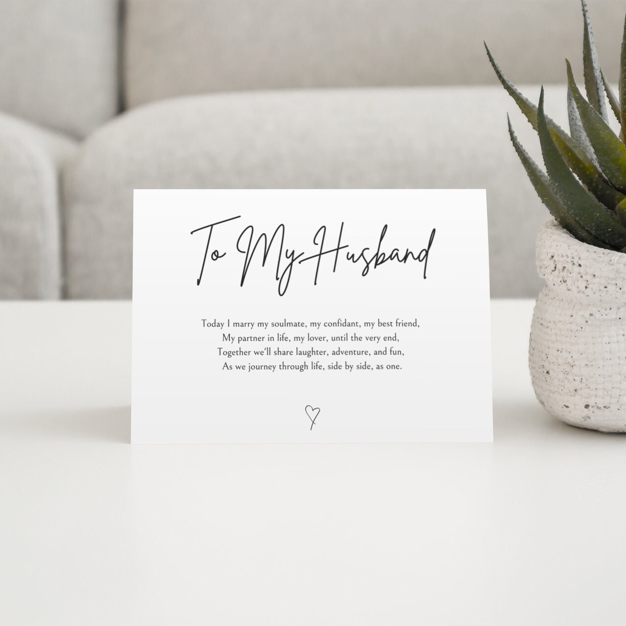 "Celebrate your love and commitment with our \"To My Husband On Our Wedding Day\" car...