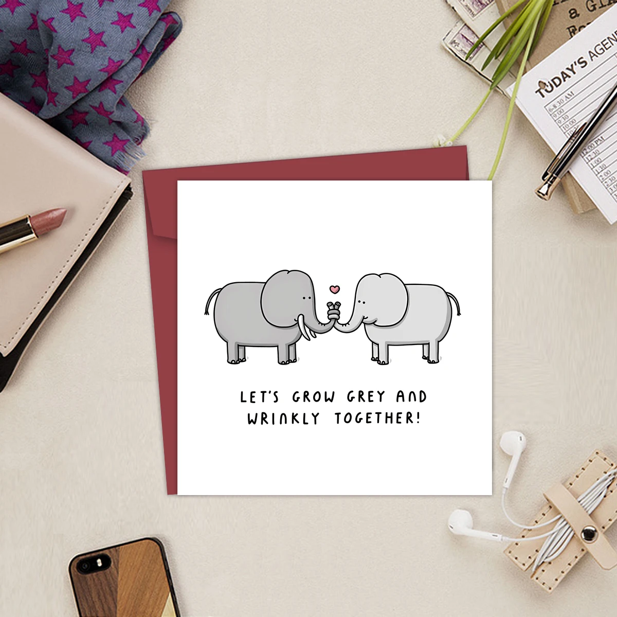 Cute Elephant Anniversary Card for Him Her, Let's Grow Grey And Wri...