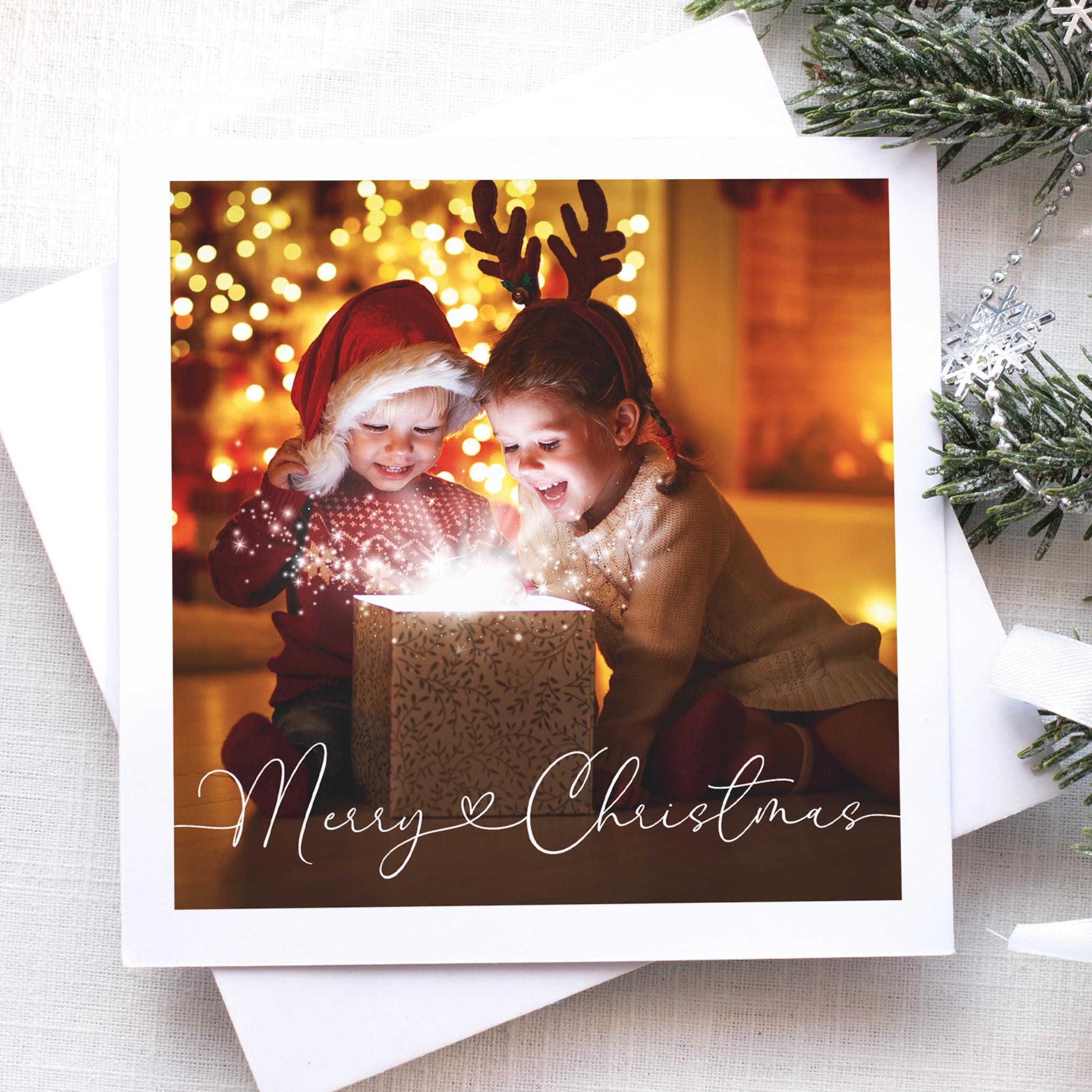 "Wish your friends and family a Merry Christmas with our beautiful personalised photo Christmas...