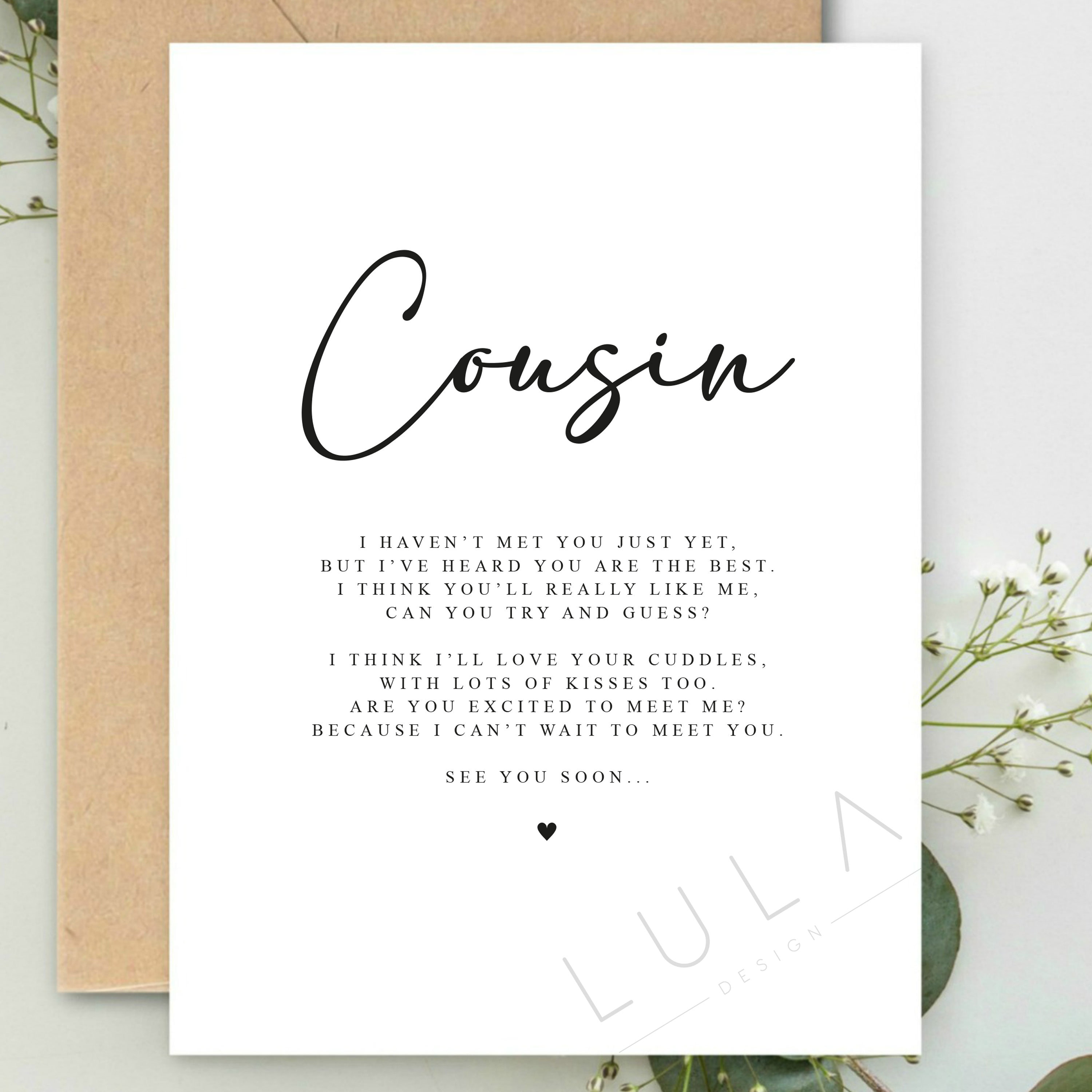 COUSIN Poem Pregnancy Announcement A5 Card with Kraft Envelope. Due to high demand, I am delighted t...