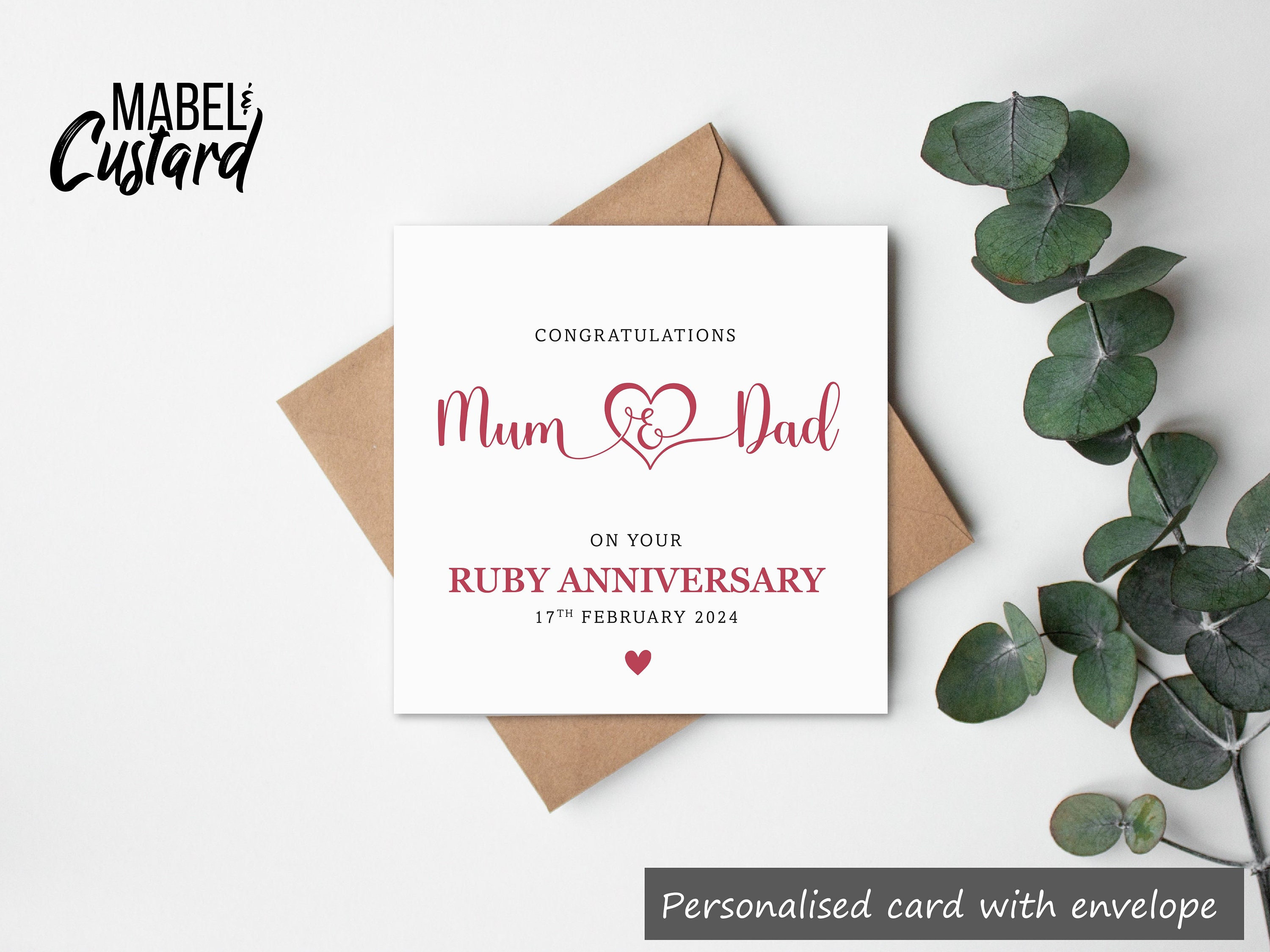 Ruby Wedding Anniversary Gift Card, Personalised Card, Ruby Wedding Card, Anniversary Card, Ruby Ann...