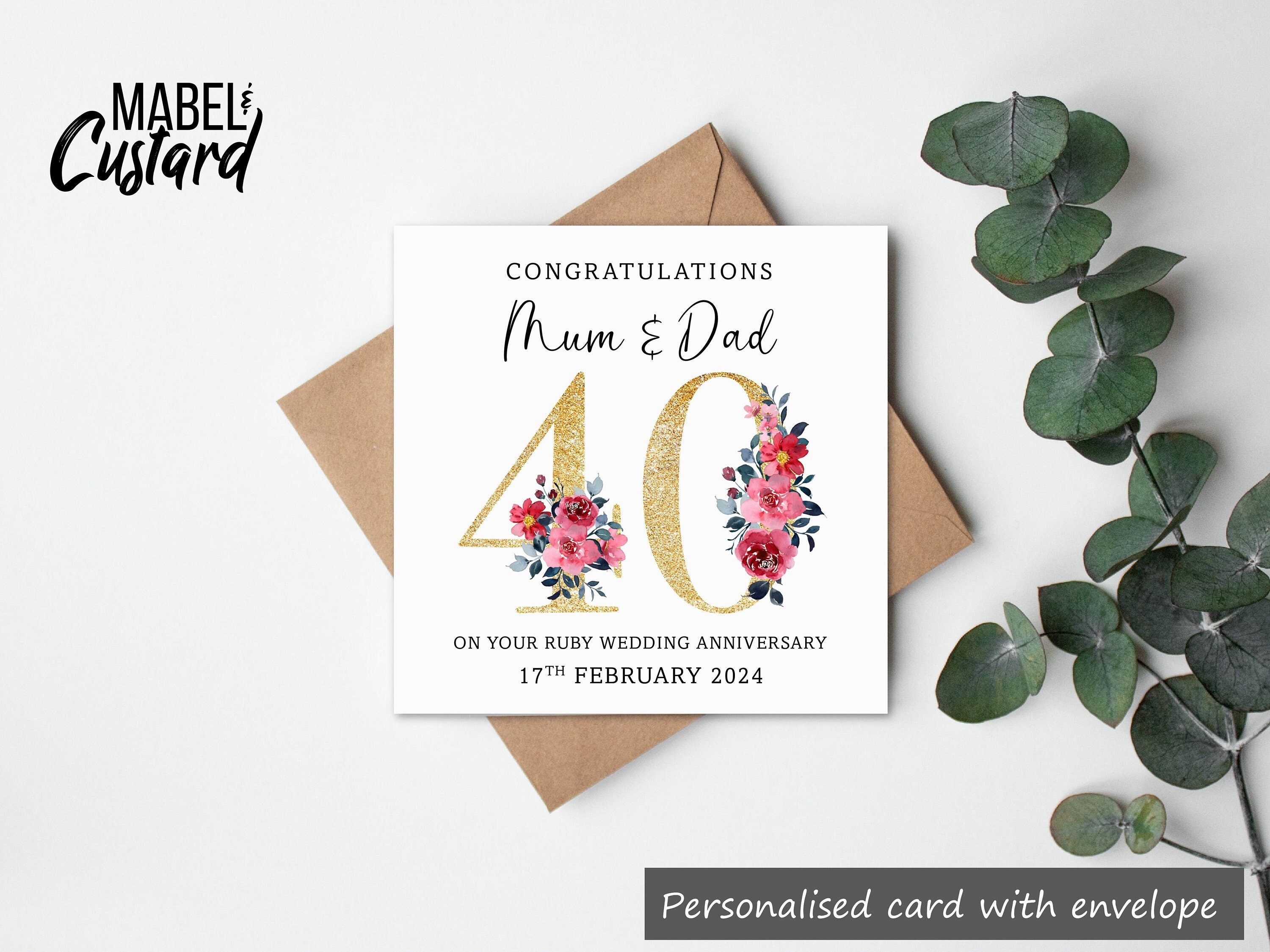 40th Wedding Anniversary Card, Personalised Card, Ruby Wedding Anniversary Card, Ruby Anniversary, 4...