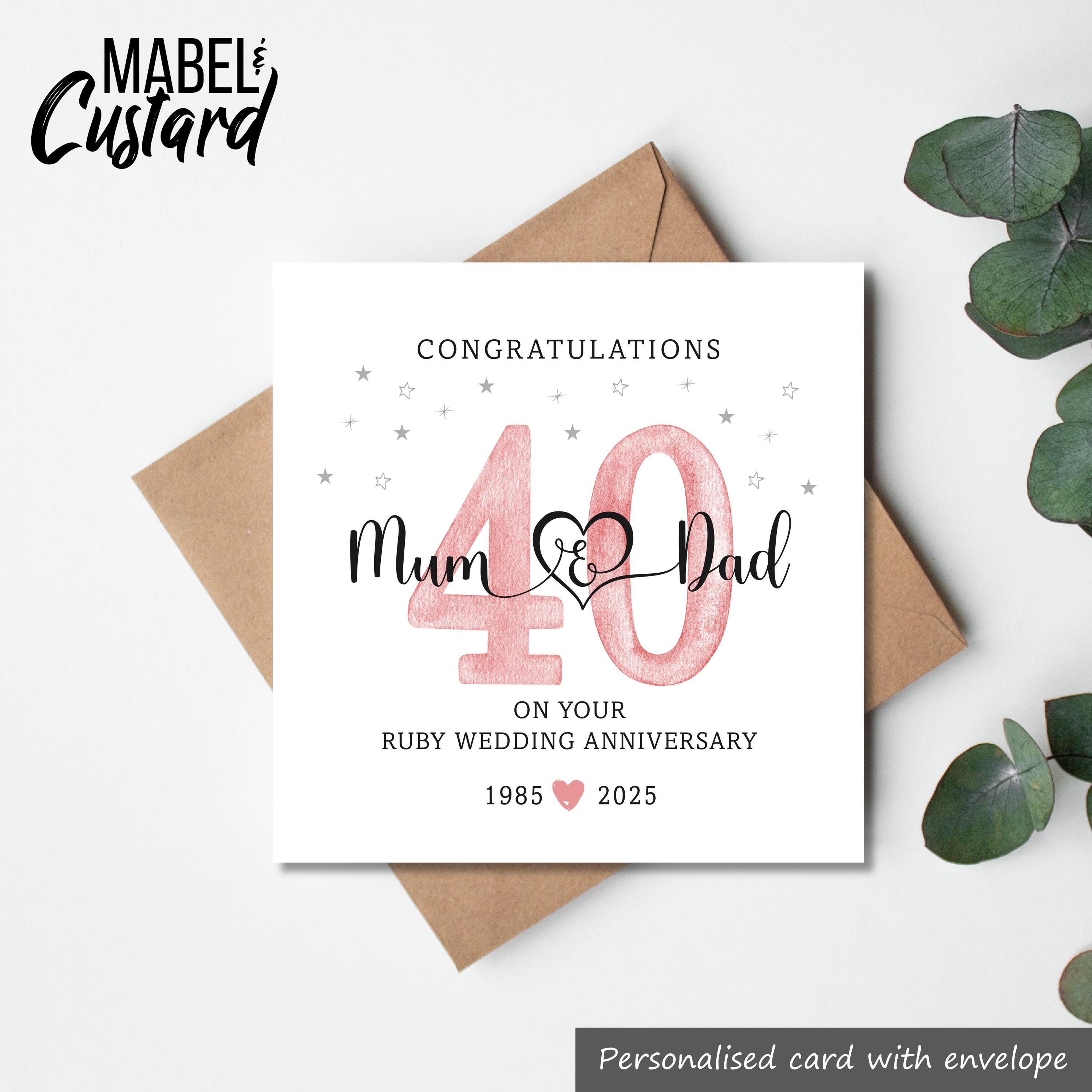 40th Wedding Anniversary Card, Personalised Card, Ruby Wedding Anni...