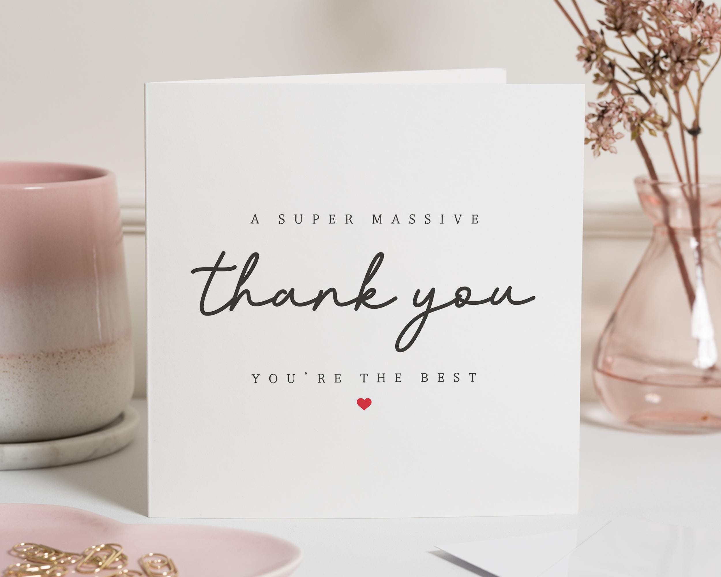 A beautifully simple personalised thank you card featuring the recipient's name and a heartfelt mess...
