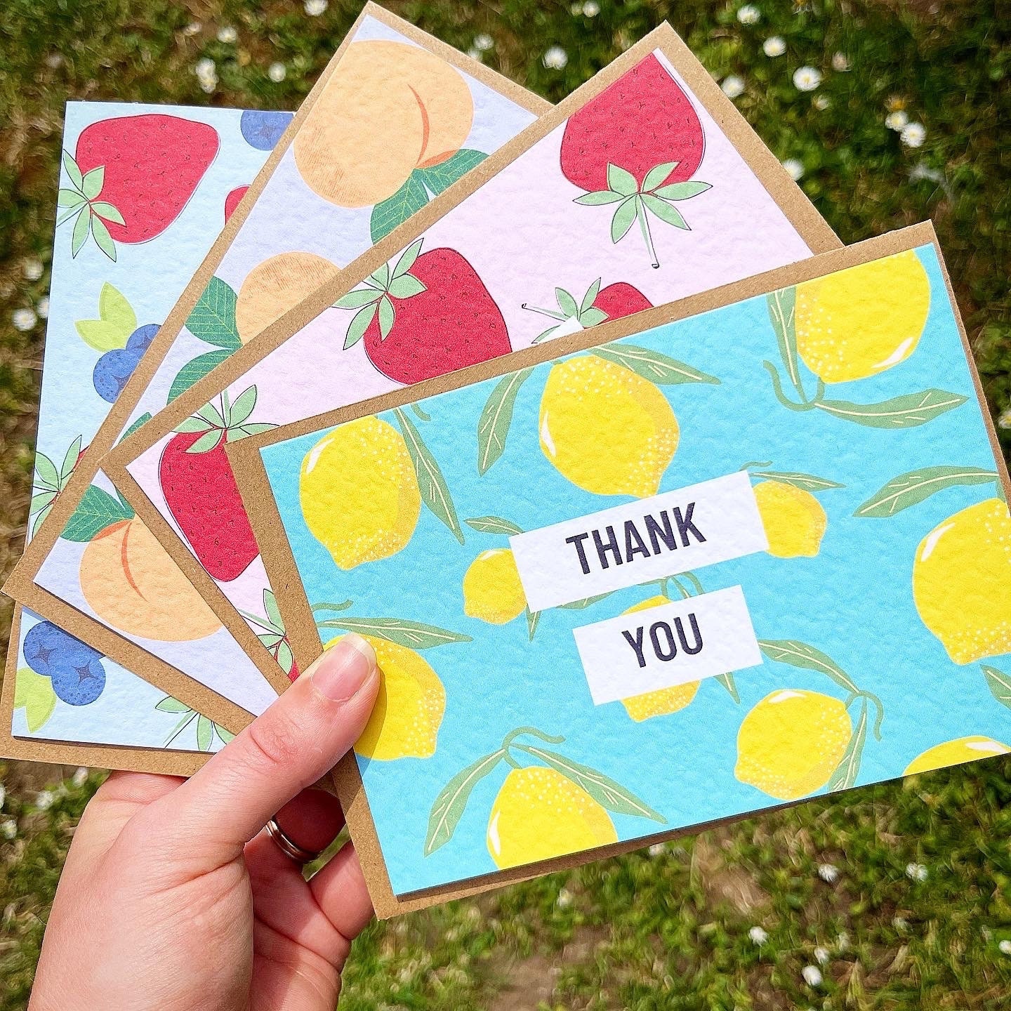 PACK OF 10 THANK YOU CARDS - 5 DIFFERENT DESIGNS Available as either an A6 postcard or as a folded A...