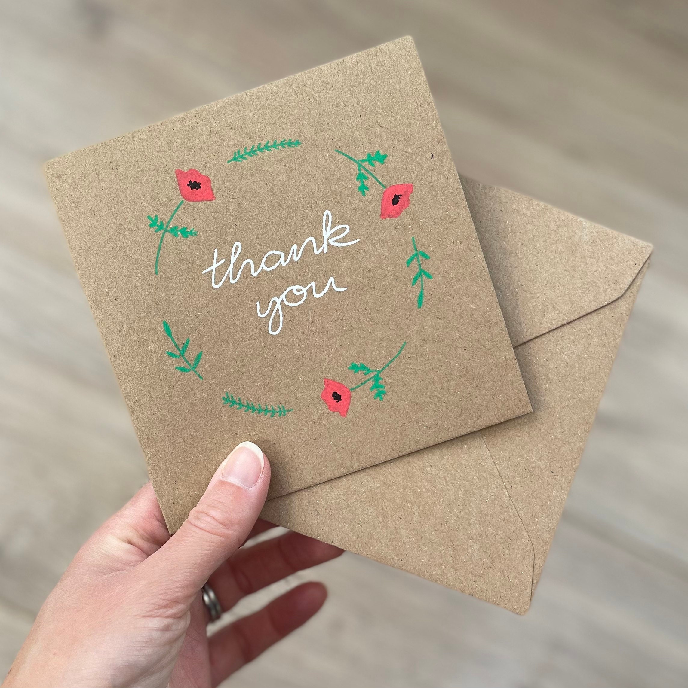 Poppy thank you card - poppy card - thank you card - floral thank y...