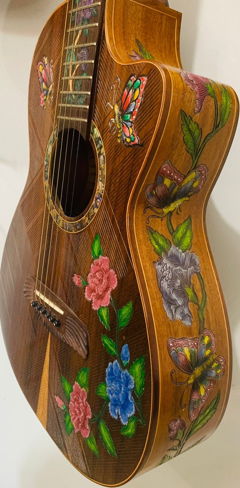 "Blueberry Handmade Parlor Acoustic Guitar Floral Built to Order in 80 Days You can watch this ...