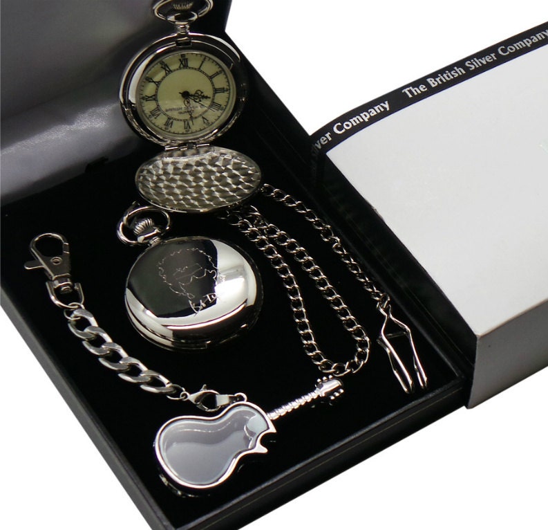 Bob Dylan Signed Silver Pocket Watch and Glass Guitar Keychain Keyr...