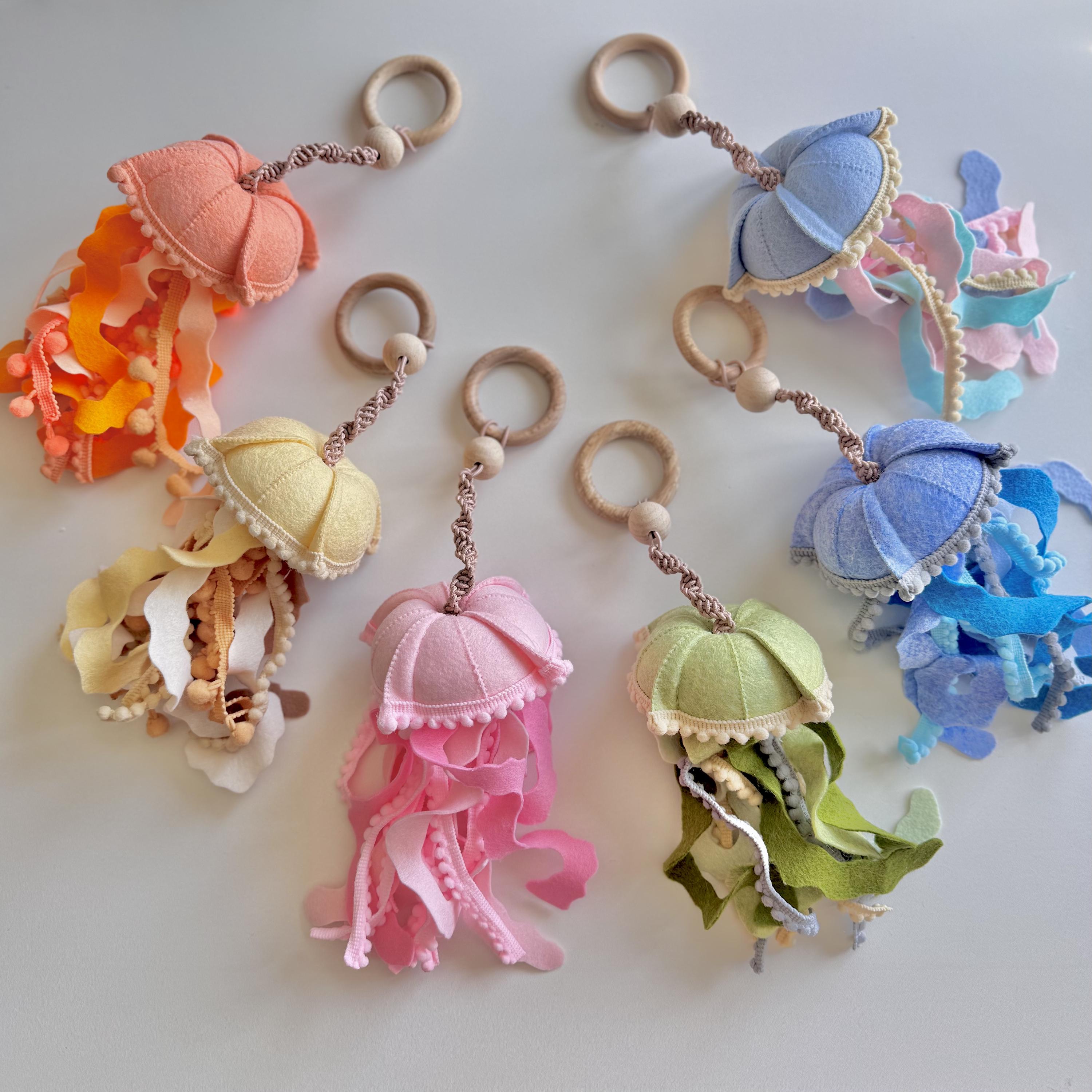 Wooden Baby Play Gym Set, Soft Jellyfish Hanging Toys, Colorful Sen...