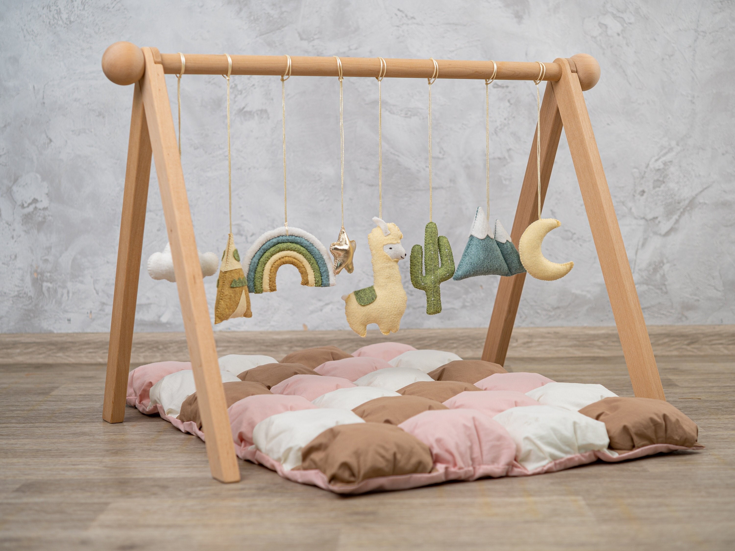 Boho baby gym with Llama toys and baby play mat, baby activity mat,...