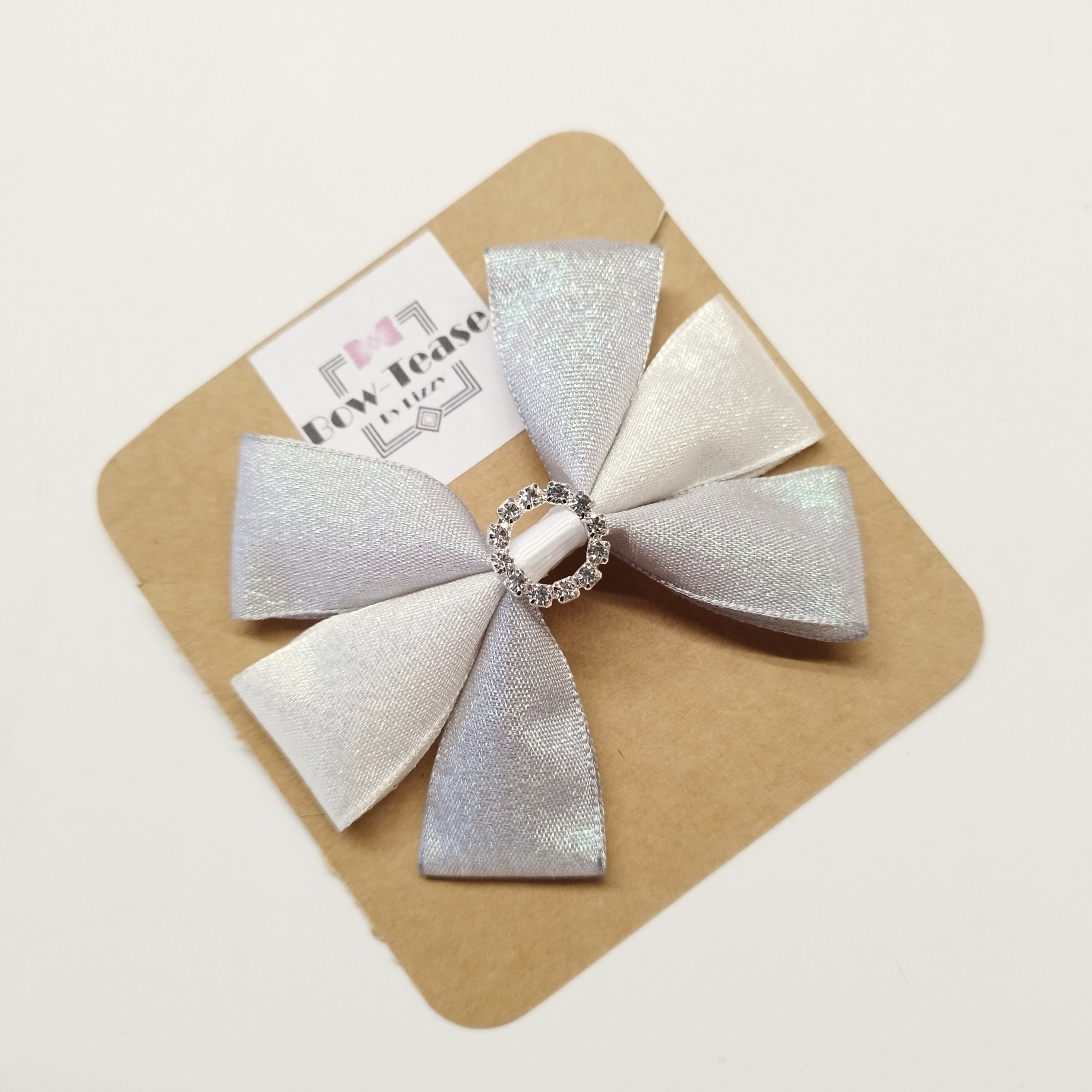 Silver and White Glitter Sparkle Bow Available in 5 sizes and finished as a clip , bobble (B), Alice...