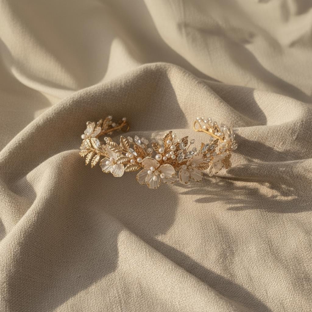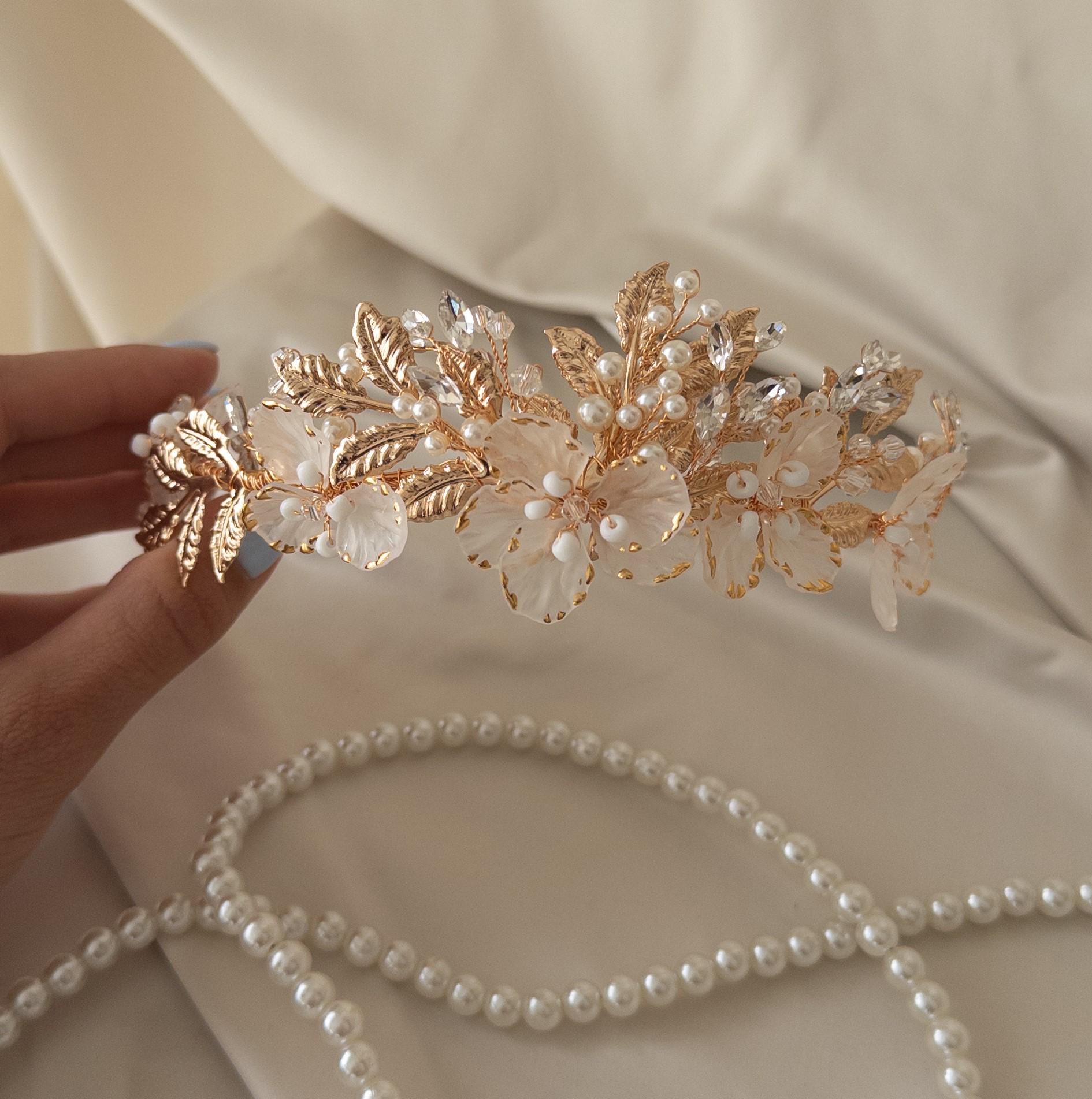 Gold floral crown, Flower bridal headpiece, Flower bridal tiara, Fl...