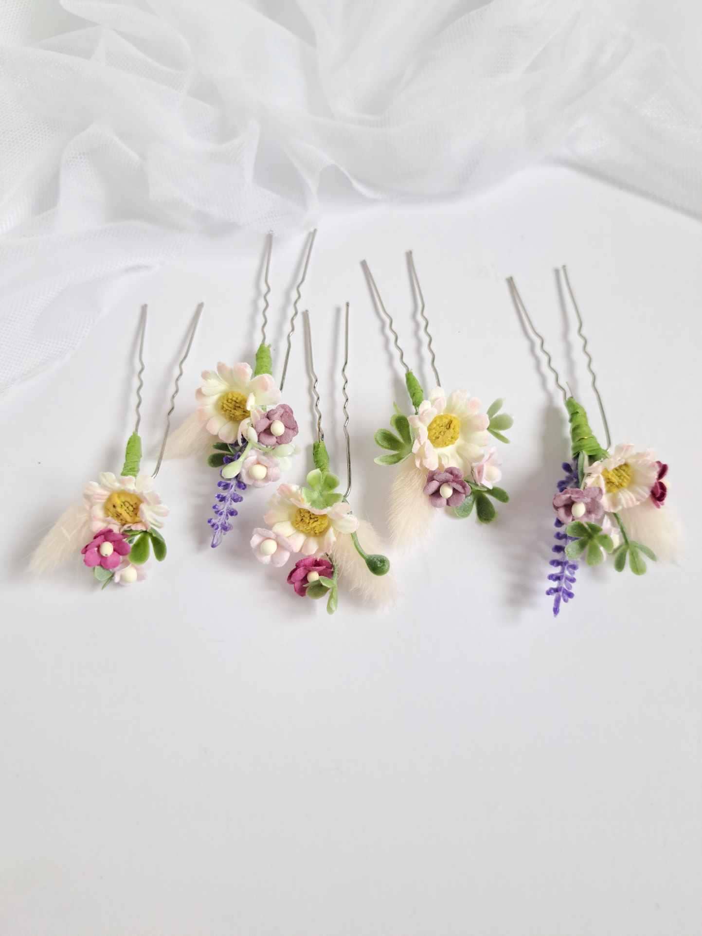 Chamomile wedding flower hair pins Lavender pink wedding flower hai...