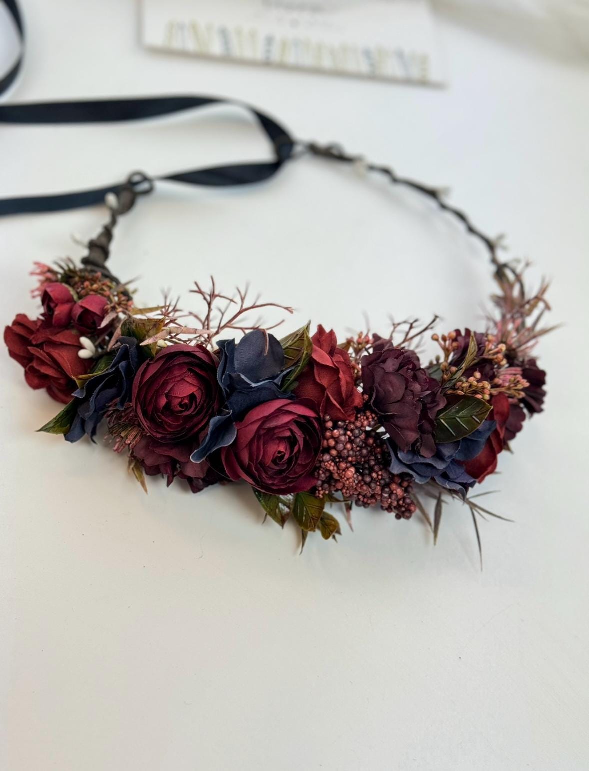 Burgundy black flower crown Bridal flower crown Flower wreath Weddi...