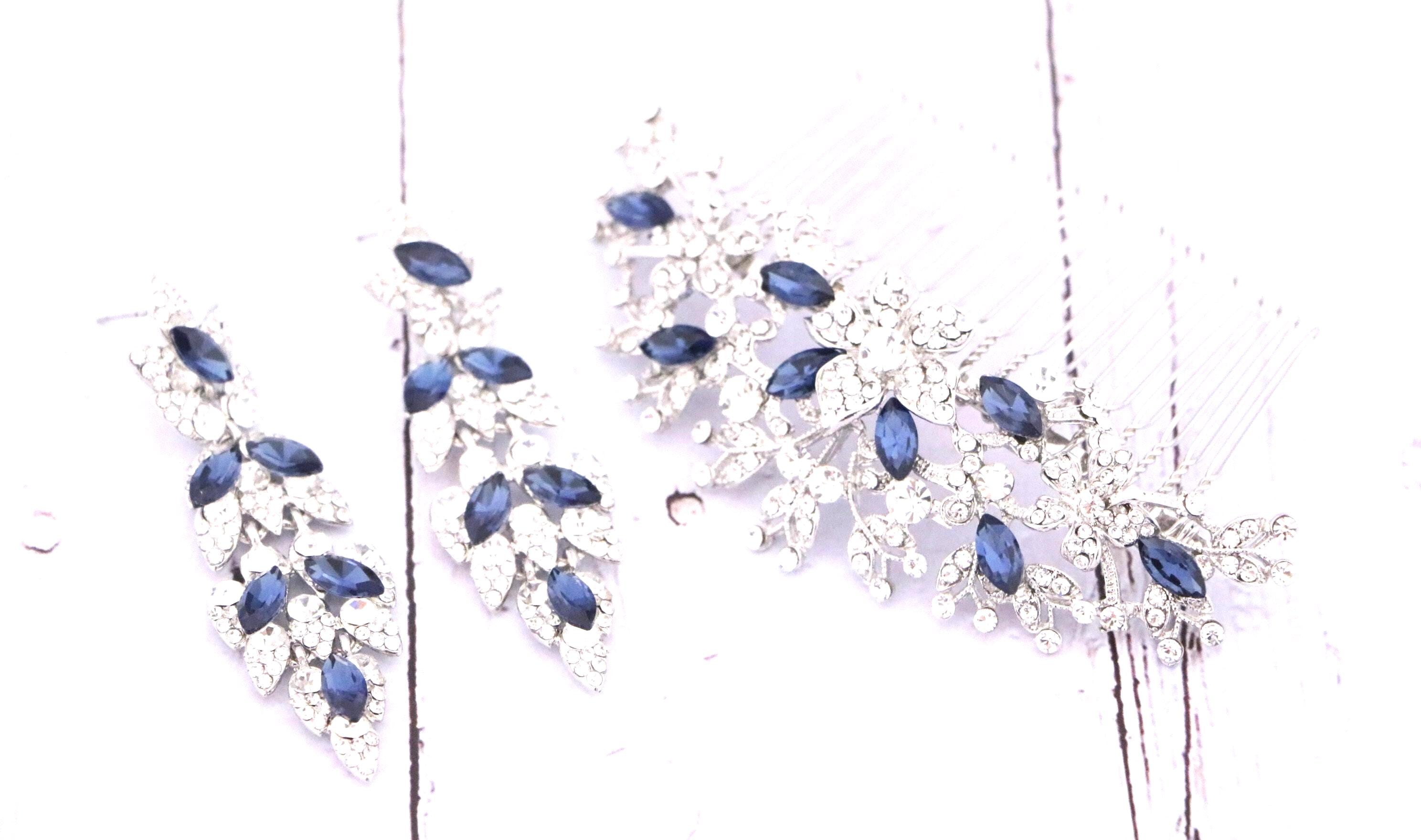 Bridal Blue comb Navy blue Wedding earrings Bridal Blue navy Earrin...