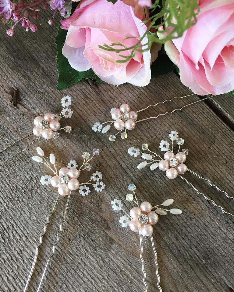 SET OF 5 Blush Hair Pins, Floral Hair Pin, Blush Pink Hair Accessor...