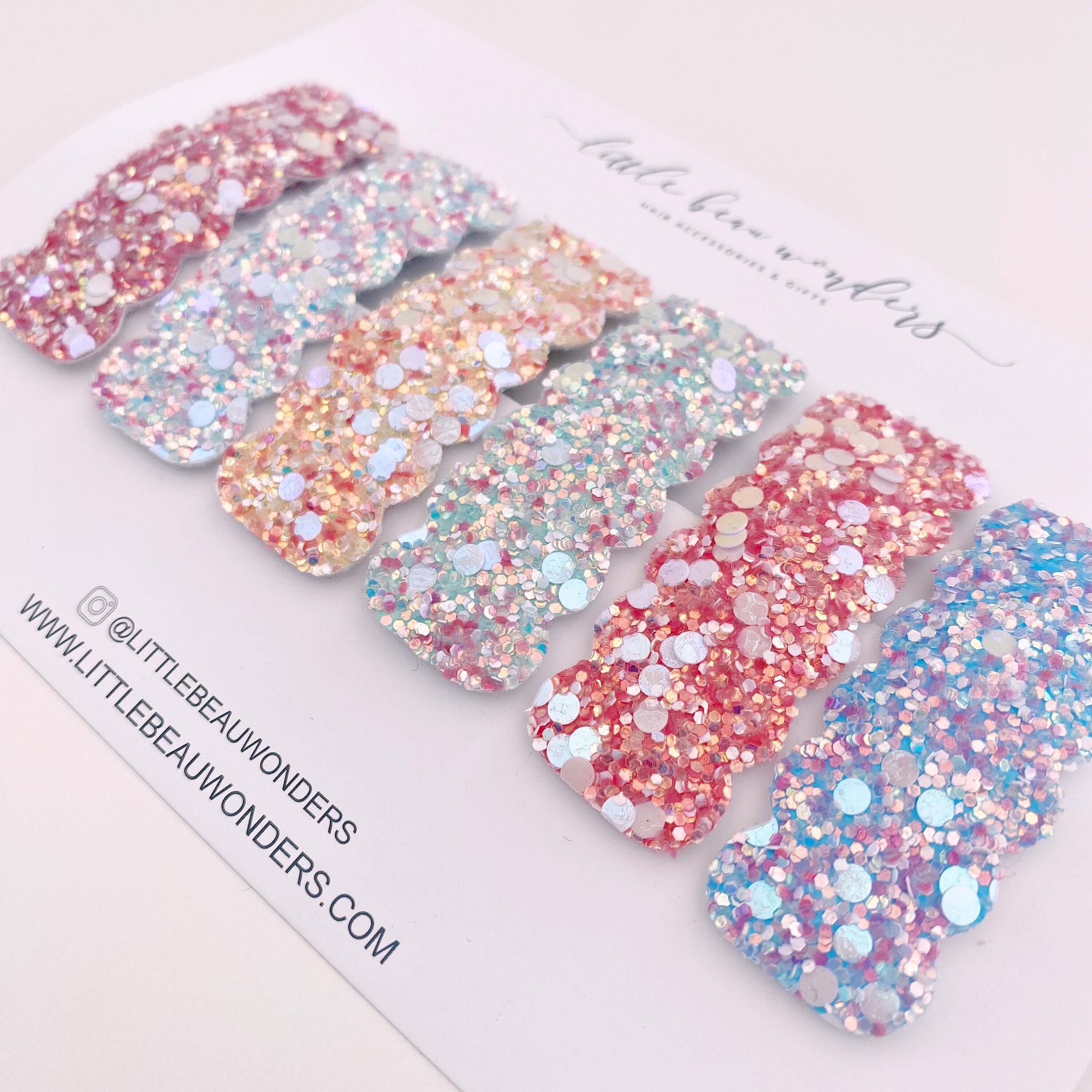 Handmade Sweetshop sparkle rectangle scalloped snap clips. Set of 6. Size: 5cm approx. Instagram: @l...