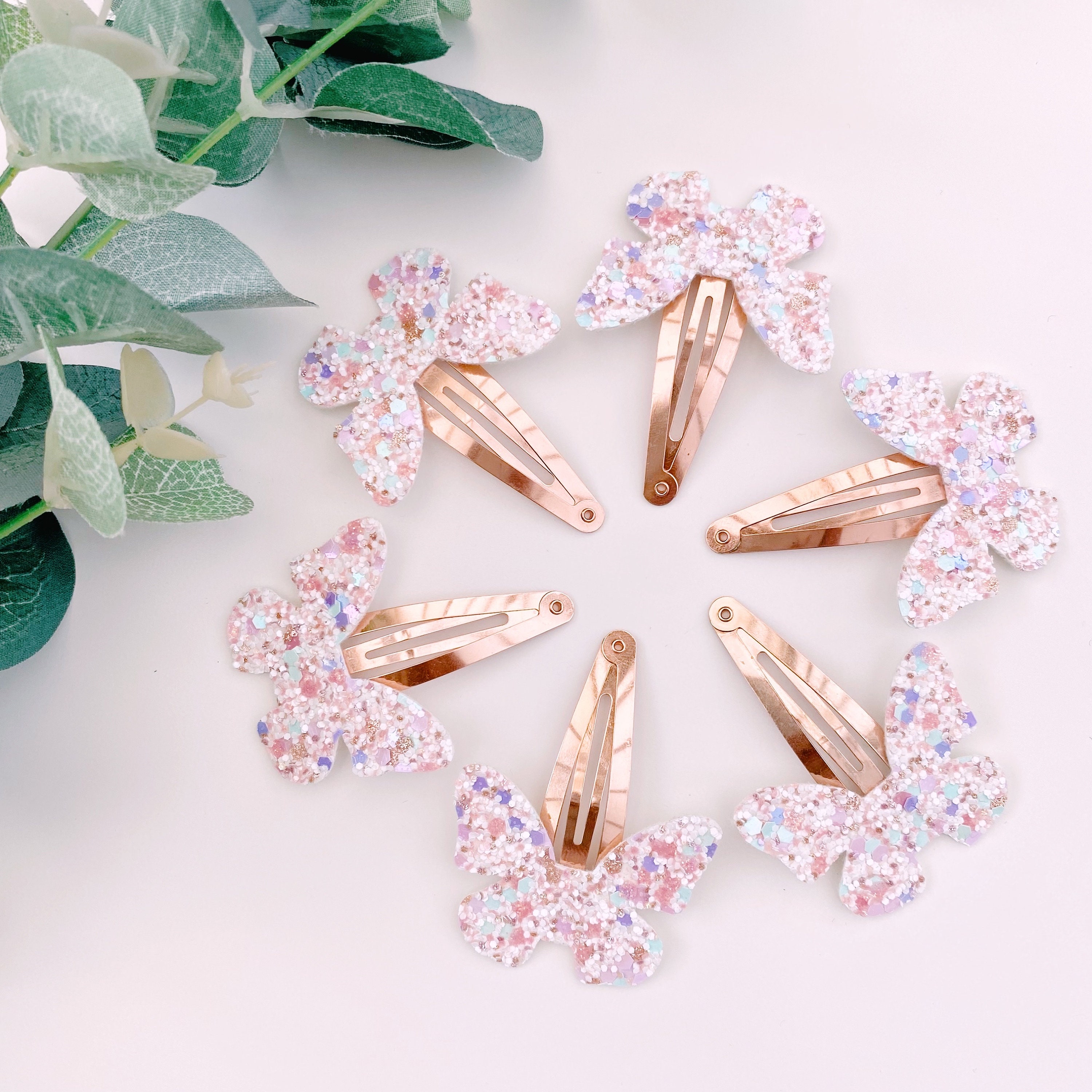 Handmade rose gold mixed glitter butterfly clip. Size: 5cm approx. Instagram: @littlebeauwonders Web...