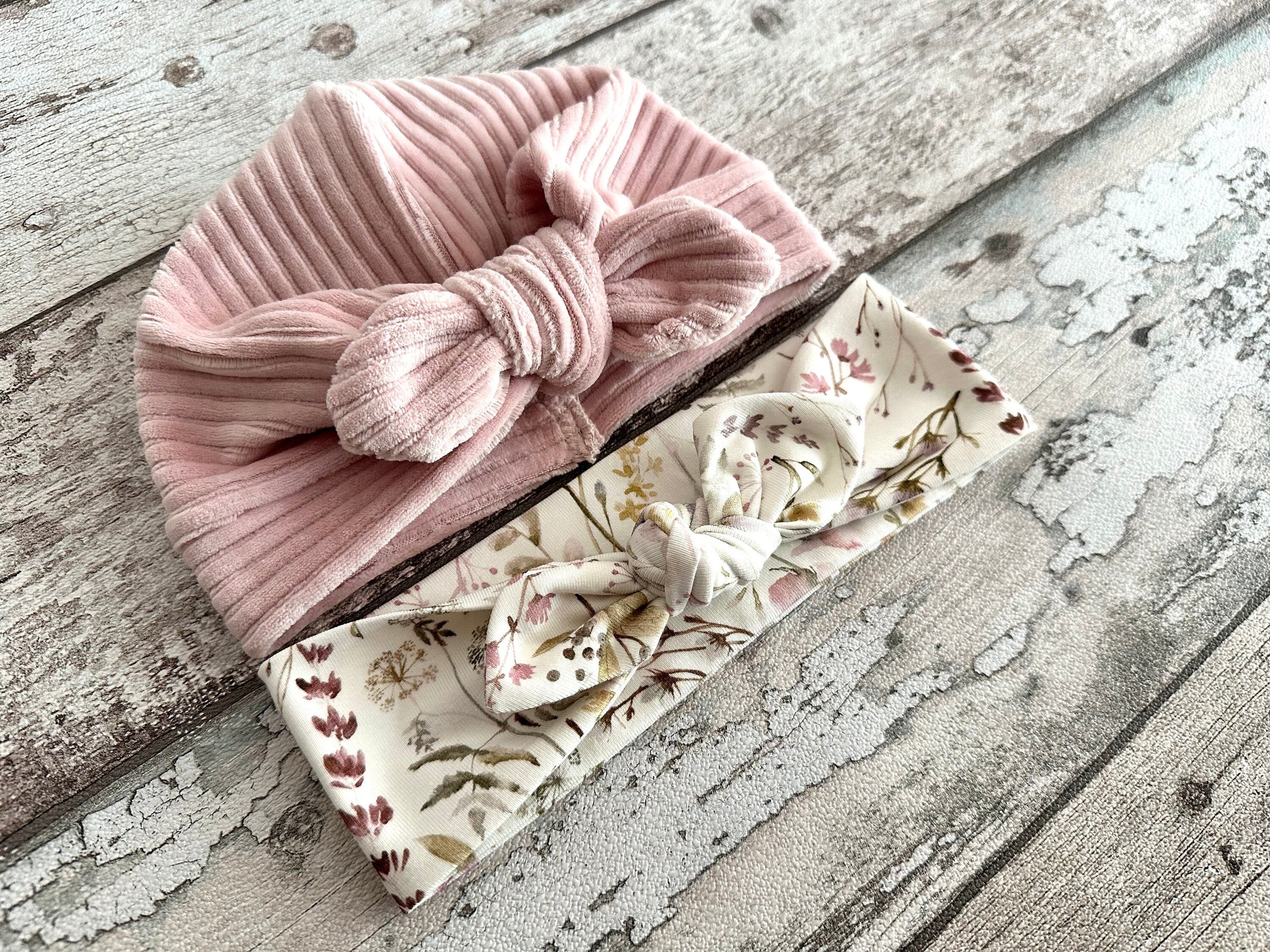 Pink Turban Hat with bow, Newborn Baby Hat, Baby Turban Hat for Aut...