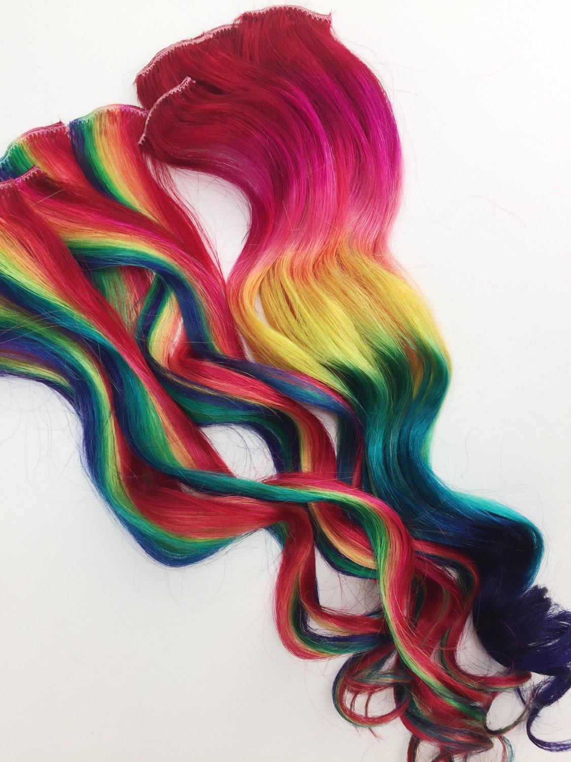 Rainbow Human Hair Extensions. Colored Hair Extension Clip, Hair We...