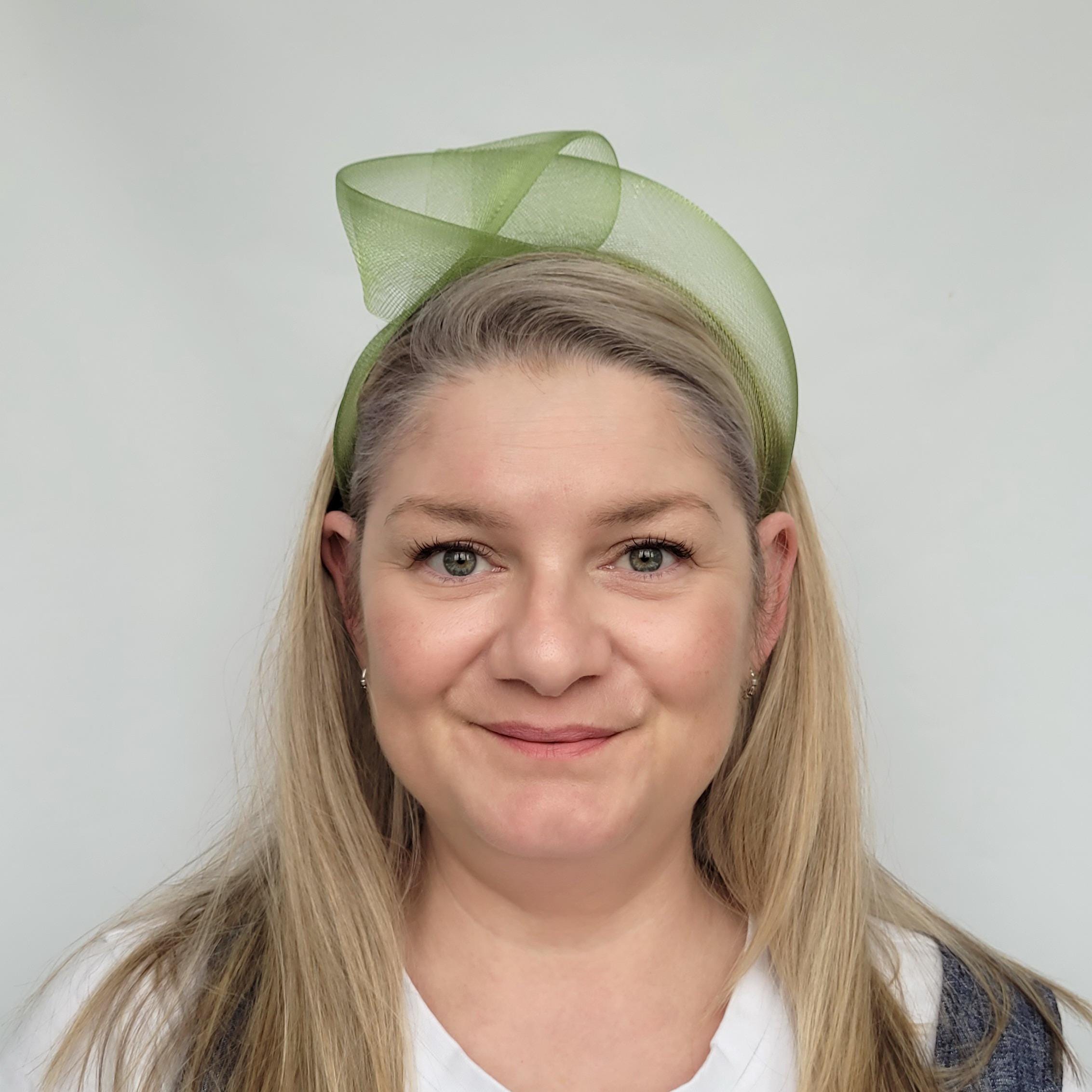 Moss Green Crinoline Knot Headband, Moss Green Fascinator Headband,...