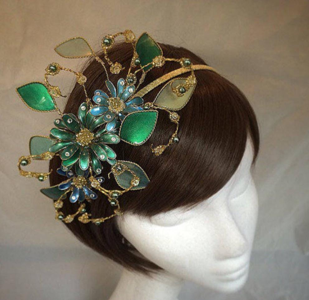 Peacock tiara, Flower fascinator, Green fascinator, mother of the b...
