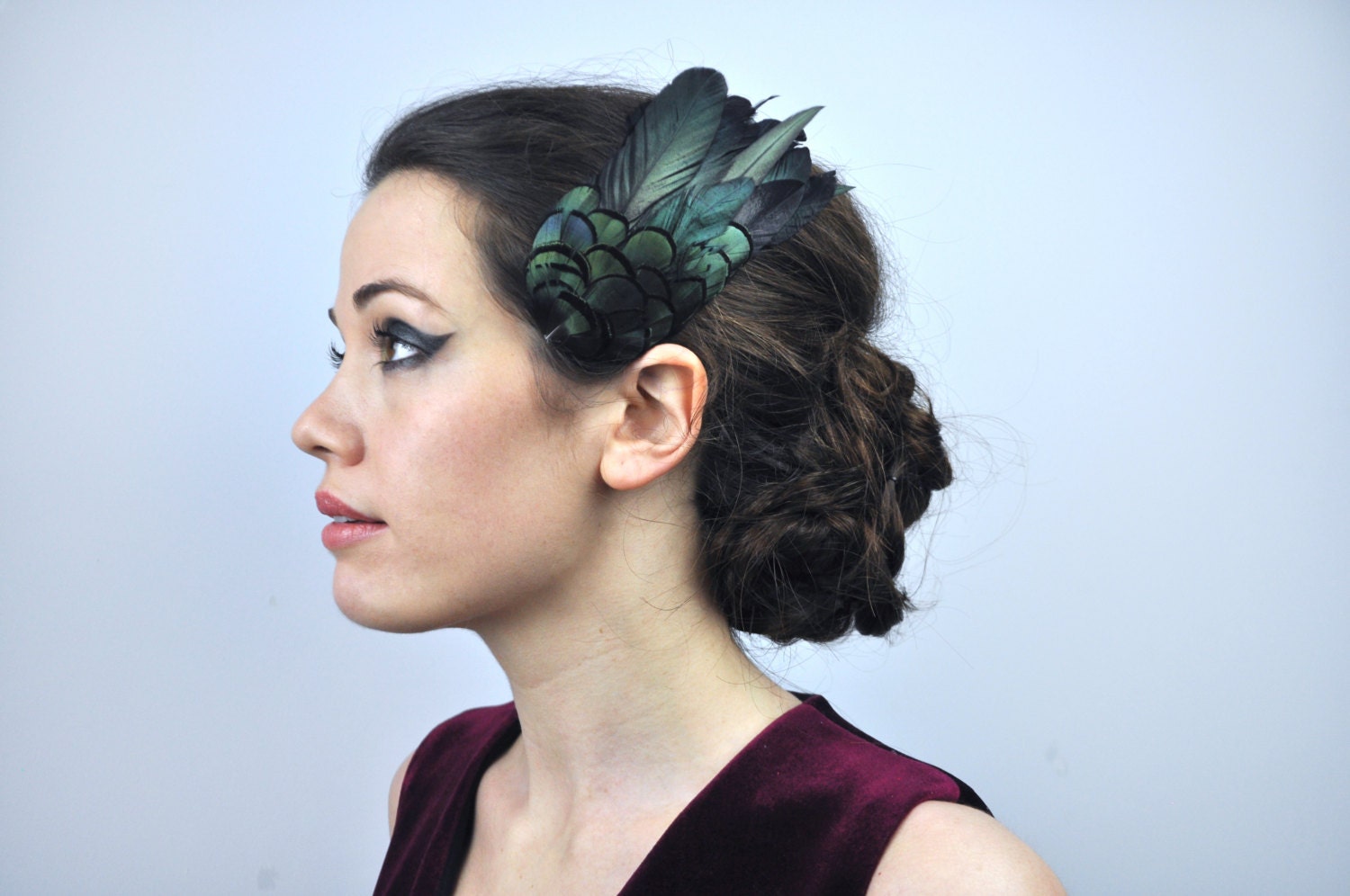 Feather Hair Clip in Glossy Green Black Natural Feathers | Black Fe...