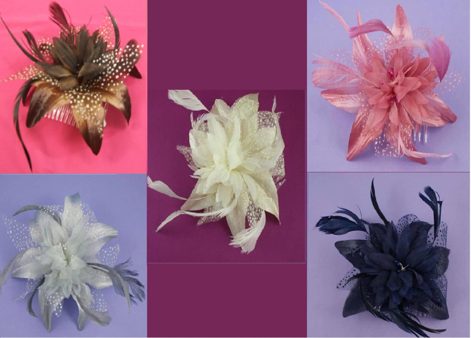 Flower, Net & Feather design Fascinator on Clear Hair Comb Wedding Races Prom Clear comb flower ...