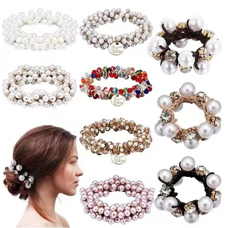 Vintage Glam Scrunchie Set - Faux Pearl Rhinestone Detail, Comfort ...