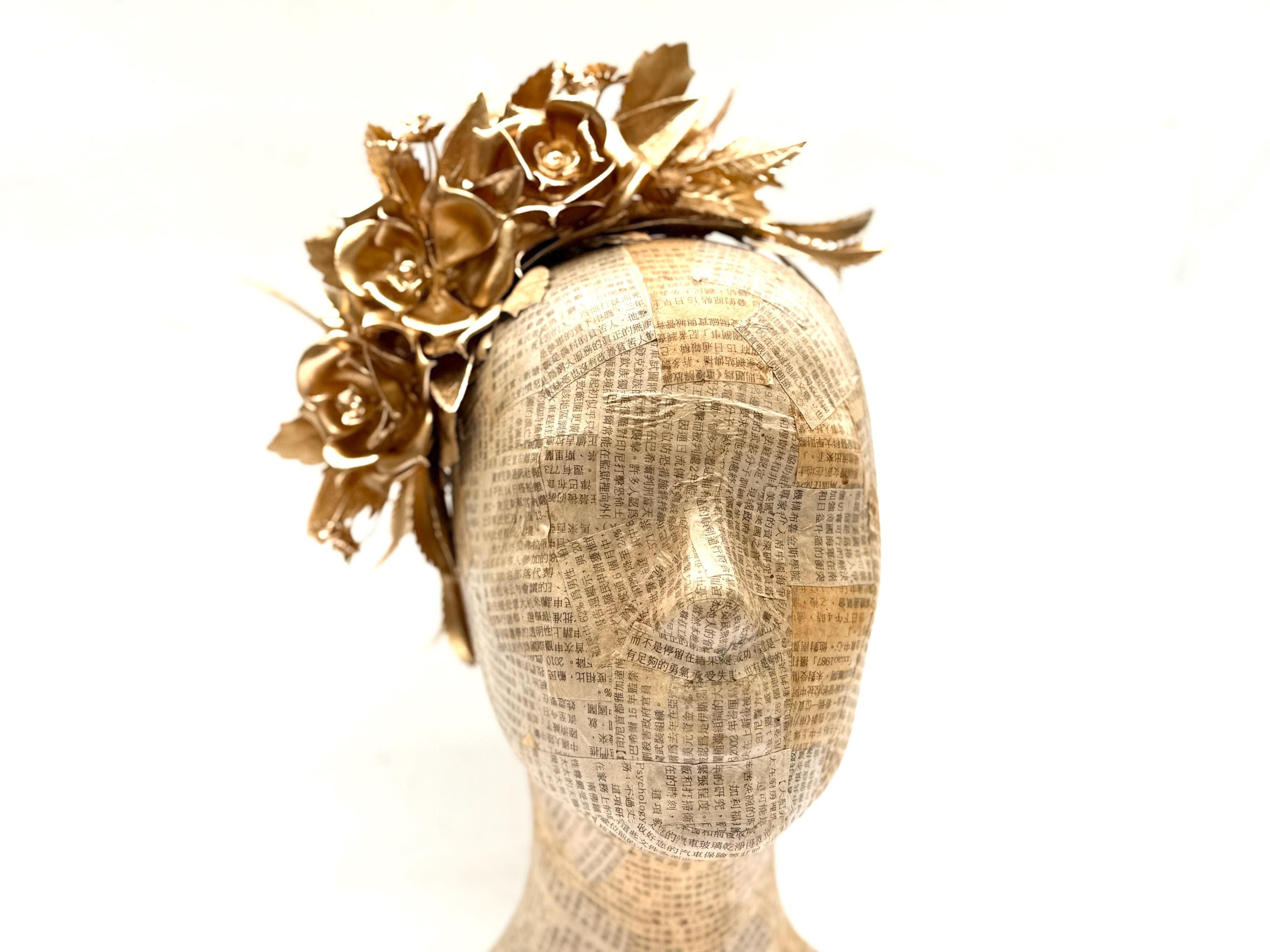 Gold Rose Crown, Flower Headpiece, Mardi Gras Costume, Maternity ph...