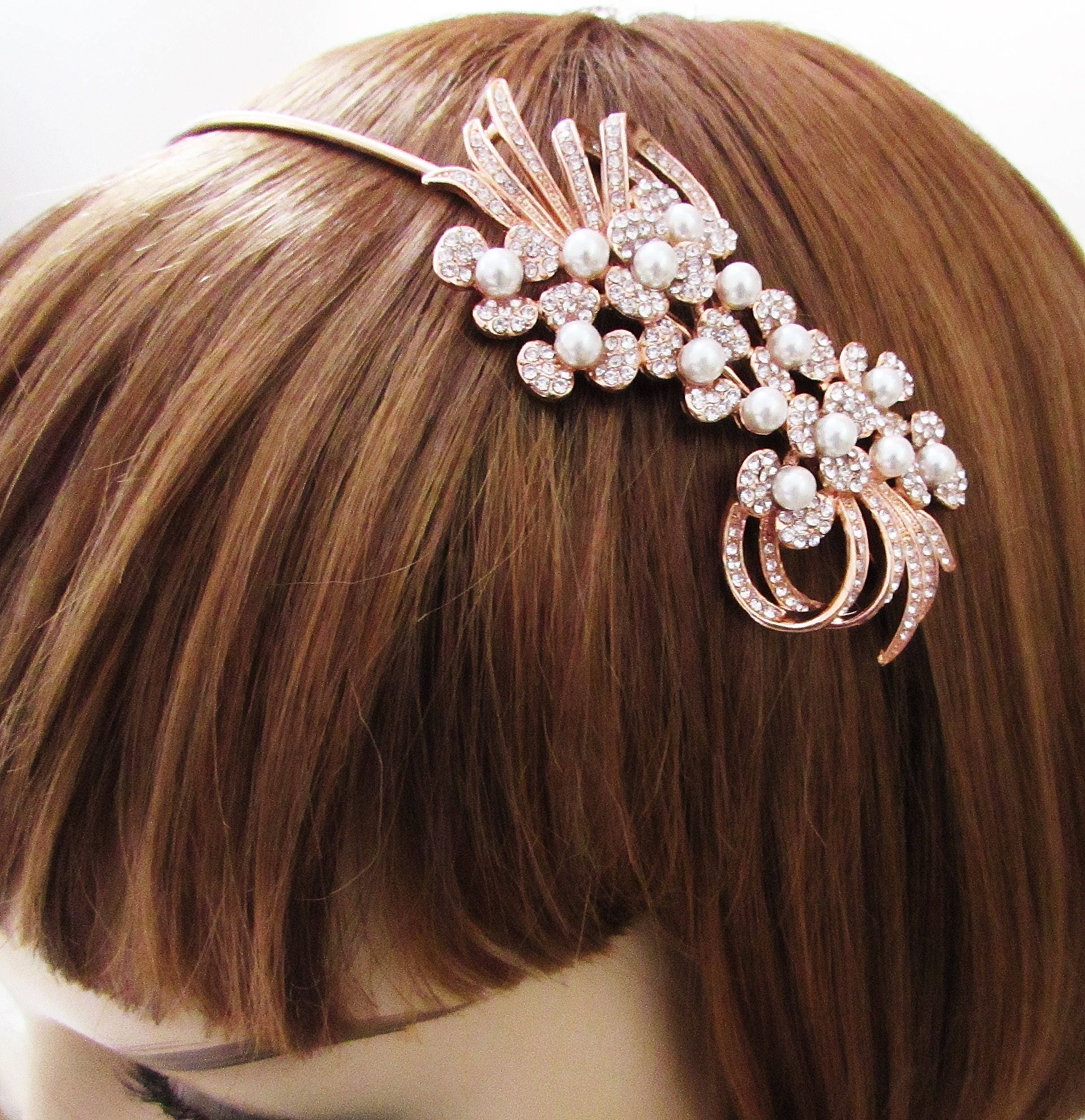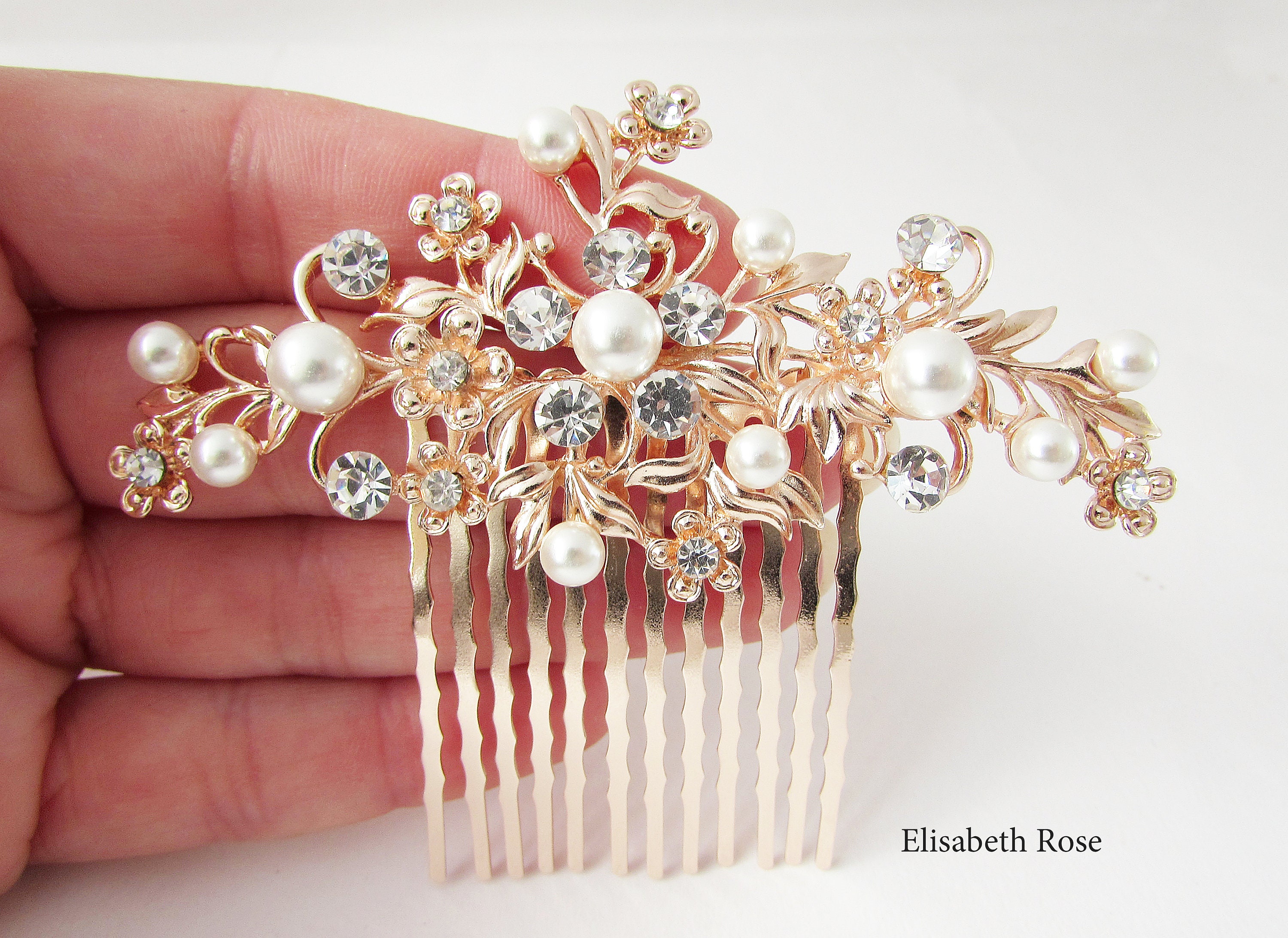 Decorative Rose Gold Wedding Hair Comb, Rose Gold and Pearl Hair Co...