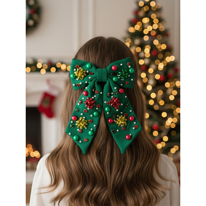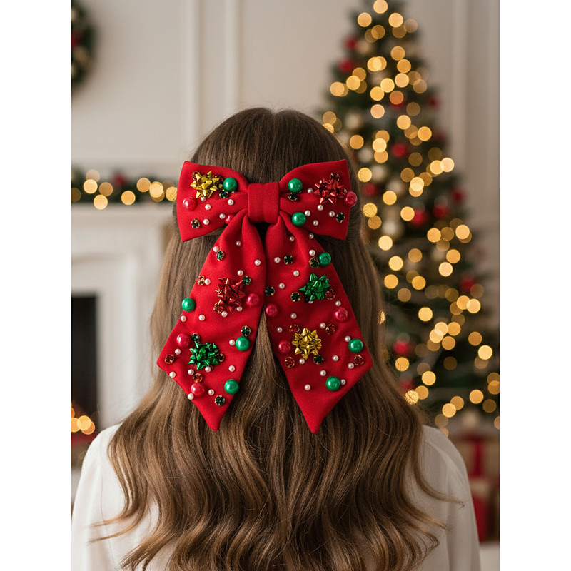 Women's Christmas Red Velvet Hair Bow with Embellished Glitter and ...