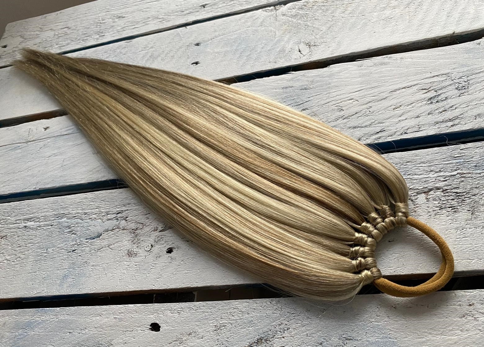 Light Ash Blonde Ponytail Extension On Rubber Band,Synthetic Hair E...
