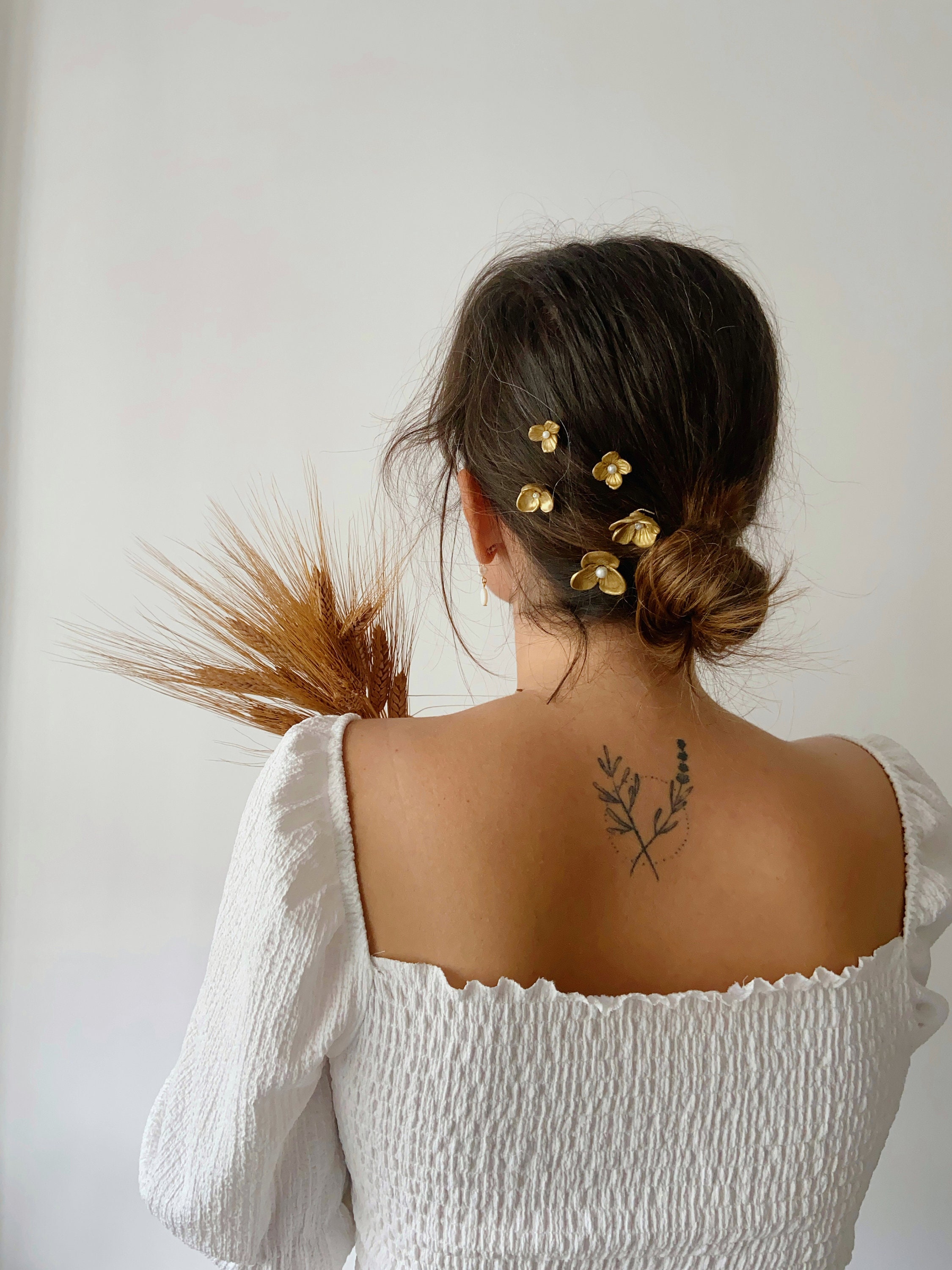 Golden floral hair pins, Flower Hair Pins, Gold Hair Pins, Floral H...