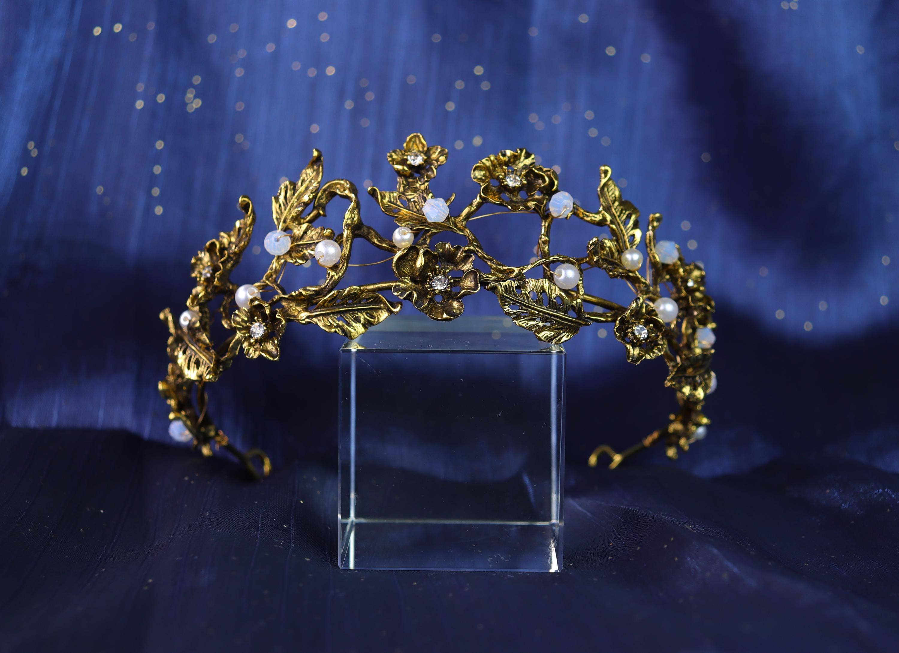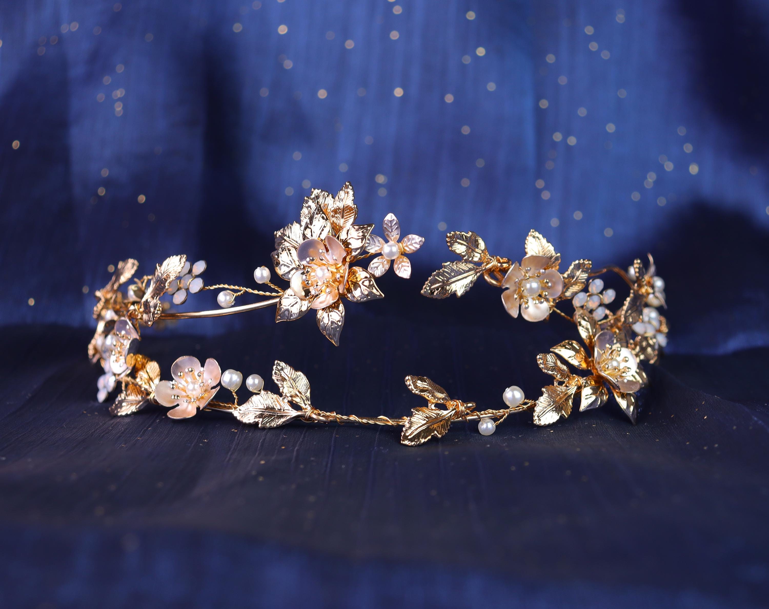 Handmade Flower Bridal Crown Floral Wedding Crown,Gold Bridal Tiara...