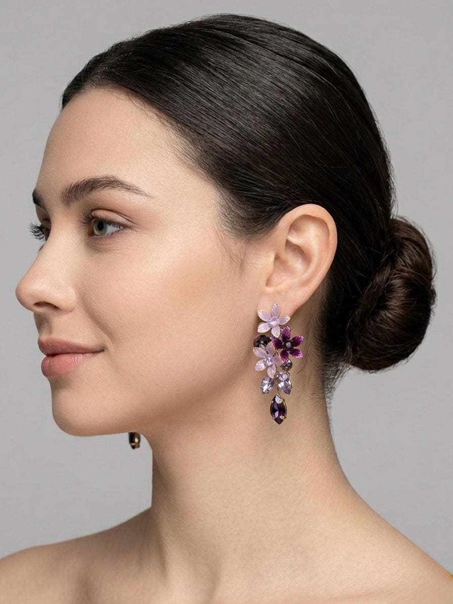 earrings IS MADE OF Size 2 inch Jewerly wire flowers Purple crystals Lilac crystals CUSTOM ORDERS If...