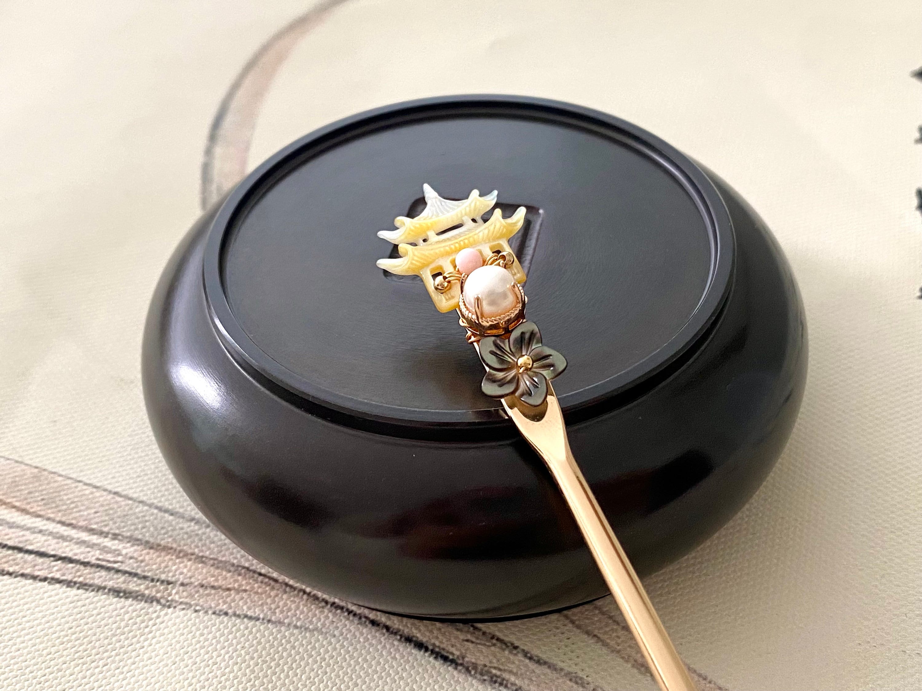 mother of Pearl ️ Yellow ️ black freshwater Pearl ️ Gemstone Hair Fork ️...